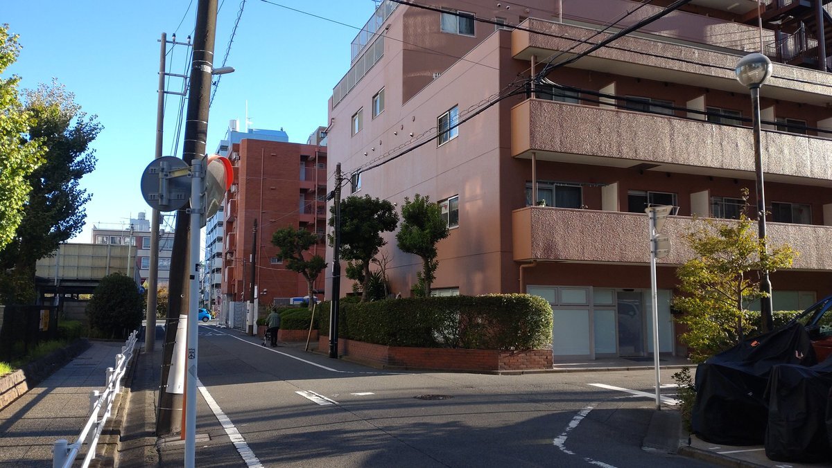 二ヶ領用水渡田堀の堀跡を追って川崎日進団地の西のT字路を西に向かうと、日進町の簡宿街の手前で通り抜けた東海道本線貨物支線の線路跡に突き当たって左へ! 堀は線路跡のカーブに沿った道を進み、国道15号線に出たら左折して国道沿いを東進し、T字路を直進した堀に合流していた!#川崎市 #川崎区 pic.x.com/UHwrpmZNuK