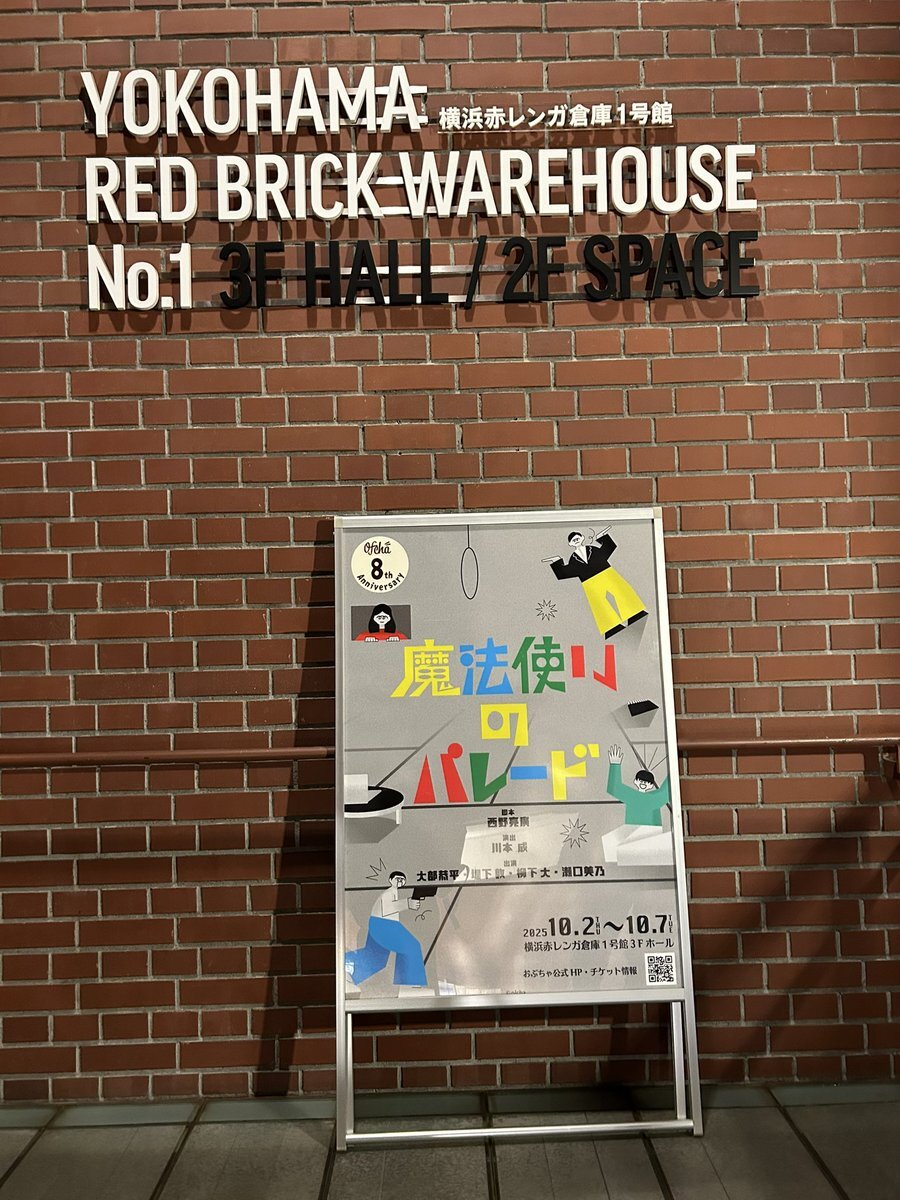 今日は横浜赤レンガ倉庫で行われている舞台! #魔法使いのパレード を観劇してきました。友達の #堤下敦 くんが出演していたのでワクワク。脚本は #西野亮廣 演出は #川本成 コメディな内容でしたが、笑うし、ちょっと泣かされた。やはり堤下くん!すごい。この作品も是非観て欲しいな。感動でした。 pic.x.com/5FPaLKJXew