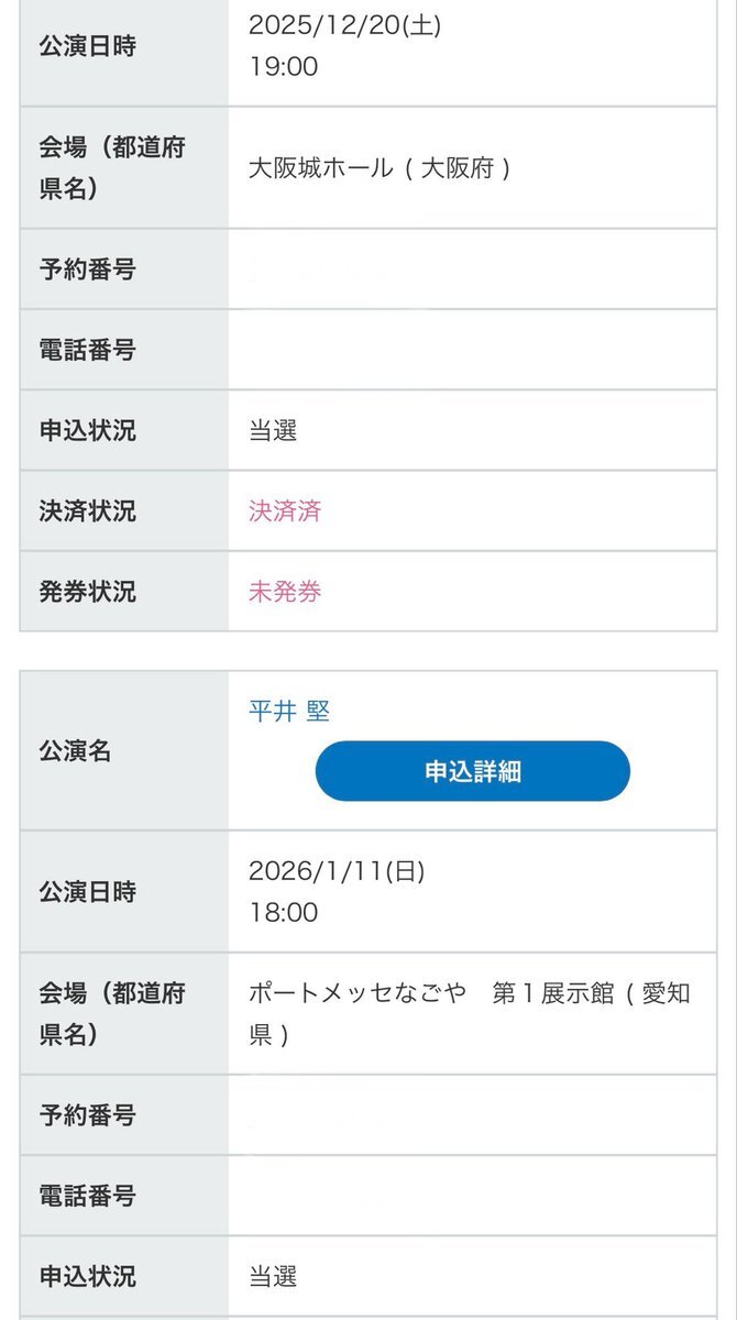 第1希望は東京オーラス。でも天候等により飛行機欠航を考え愛知も応募。 どっちか当たればラッキーだなって思ってたらどっちも当選。両方行けるなんて…(⚲□⚲)チケ運だけは持ってるわ私🔥 あとは飛行機飛びますように🙏 #平井堅 #KensBAR pic.x.com/OL2lk23pRP