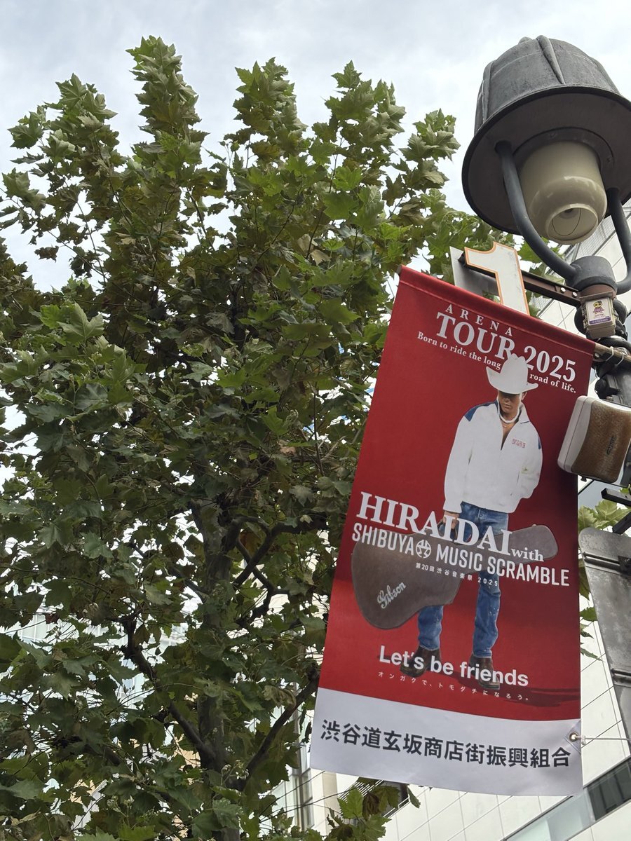 10/18(土)に『HIRAIDAI presents THE SOLO TRIP 2025 in 渋谷音楽祭』を開催する渋谷周辺エリアで様々な展開がスタート。 本日10/8(水)からは、道玄坂にオリジナルフラッグを多数掲示。 是非足を運んでみてください。 ︎︎ 詳細はこちら hiraidai.com/news/detail.ht… ︎︎ #平井大 #TheSoloTrip2025 pic.x.com/BGJXGZXdGE