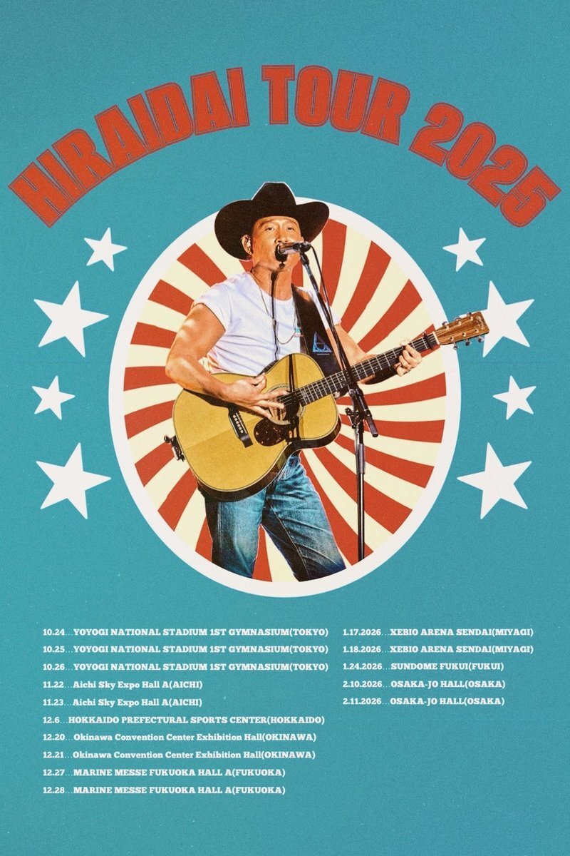 // 『#HIRAIDAI TOUR 2025』チケット一般発売中🌠 \\ #平井大 自身最大規模の全国ツアー 『HIRAIDAI TOUR 2025』開催🤠 お申し込みはこちら↓ kyodo-west.co.jp/artist_page.ph… <福岡公演> ⏰日時 2025年12月27日(土)15:00開場/16:00開演 2025年12月28日(日)15:00開場/16:00開演 pic.x.com/ExfiTID53M