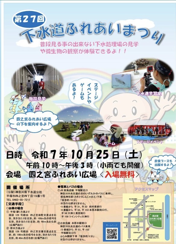 2025.10.25 今日もあいにくのお天気。 寒いですね〜💦 本日『第27回 下水道ふれあいまつり』10:00〜15:00 会場:四之宮ふれあい広場✨開催の予定(小雨でも開催)。皆さんが楽しみにしている「ふれあいまつり」が開催できますように!✨#平塚市 #下水道ふれあいまつり pic.x.com/LXsQ6apltT