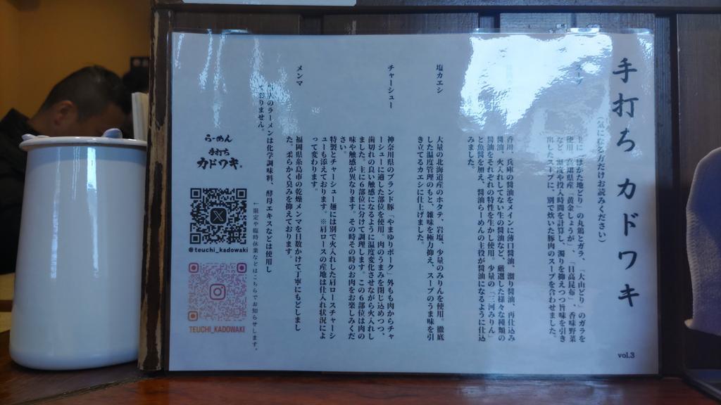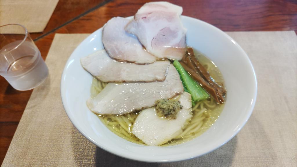 #手打ちカドワキ 手打ちカドワキ ラ141杯目   #神奈川県 #平塚市 #ラーメン   塩ブラUPニュ報👂️1056着前2㊗️後4🍜塩チャ–シュ–そば¥1300🍜コク塩味薫が🆙優しい👍柔めの麺出汁との相性🆗🍜叉焼🐷🐓デュクセルっぽい蛤のペースト🐚💯手打ち再開待ち遠しいですよ~ pic.x.com/RthitgfhtF