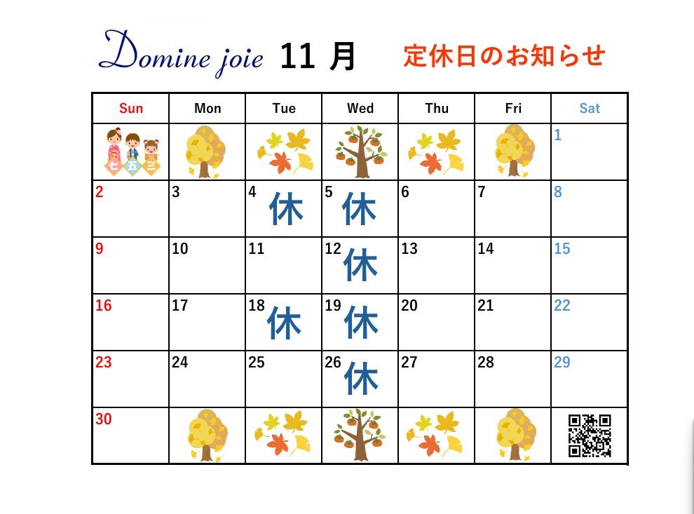 ドミネジョワ11月営業のお知らせです。 通常通り毎週水曜と第一第三火曜がお休みとなっております。いもくりかぼちゃのケーキや焼き菓子が大人気です。ご自宅用にもご贈答用にもぜひお求めくださいませ! #ドミネジョワ #平塚市 pic.x.com/KOGnumYOIg