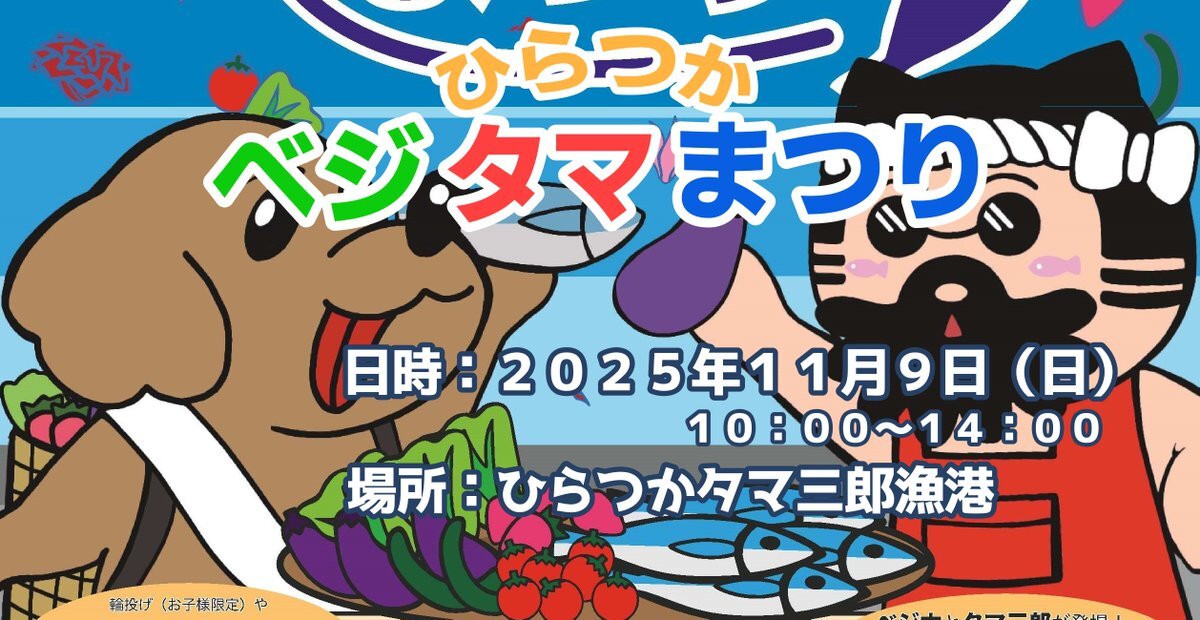 「ひらつかベジタマまつり」開催♪ひらつかタマ三郎漁港(新港)にて11/9(日)10:00スタート! wp.me/p6U87U-2H3M #ひらつか #平塚 #タマ三郎 # #fish #漁業 #定置網 #湘南 #ベジ太 #野菜 #花すくい #スタンプラリー #名産品 #つりマル #平塚市 #湘南しらす #ベジタマまつり pic.x.com/U5lhKsikc8