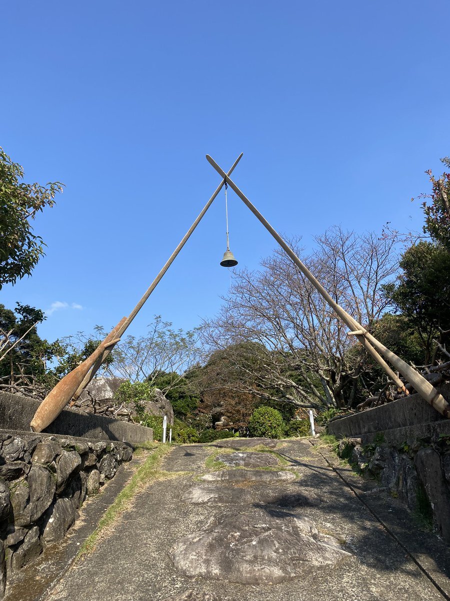 民泊の入り口に装飾してみました 地元の漁師さんから頂いた櫓(艪)を使って、鐘も頂いて、インターホン代わりにもなります。 #長崎県 #平戸市 #離島 #民泊 #古民家再生 #あの鐘を鳴らすのはあなた pic.x.com/p8nnXC9SkF