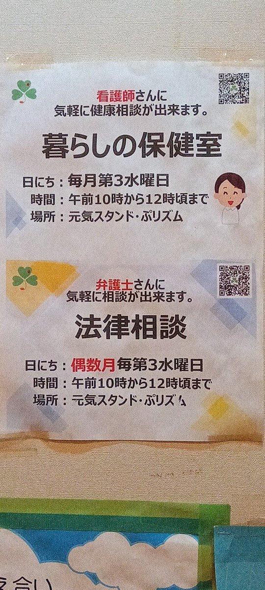 本日10月15日(水)10時から 暮らしの保健室と、無料法律相談を元気スタンド・ぷリズムで行います。 身体のことや生活の事で気になることがありましたらお気軽にご相談いただけます。 #幸手 pic.x.com/Q7rfx5Jyfz