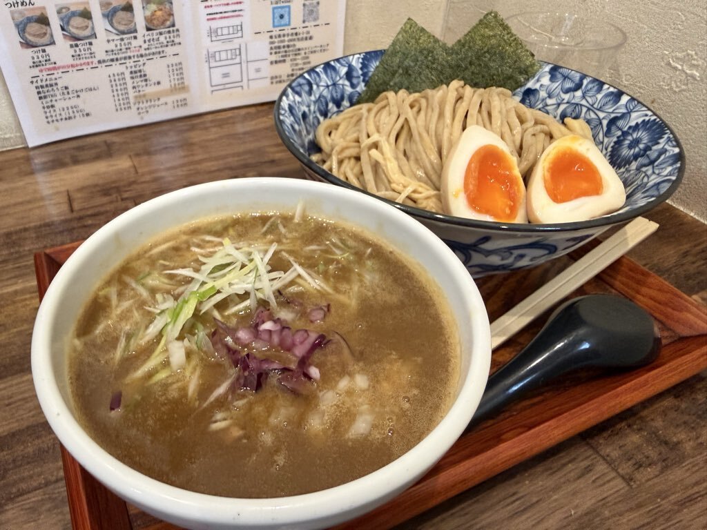 幸手の名ラーメン専門店の昴さん もうアホの一念でいつものつけ麺だけど レイアウトが変わっている 煮卵は麺の上に(煮卵を食べるタイミングが組み立てやすくなって最高!) つけ汁の上に紫玉ねぎ(見た目の爽やかさUP!) 紫玉ねぎのワンポイントいいなぁ 印象に深みが出てる #幸手 #ラーメン # pic.x.com/8xUAnJBao6