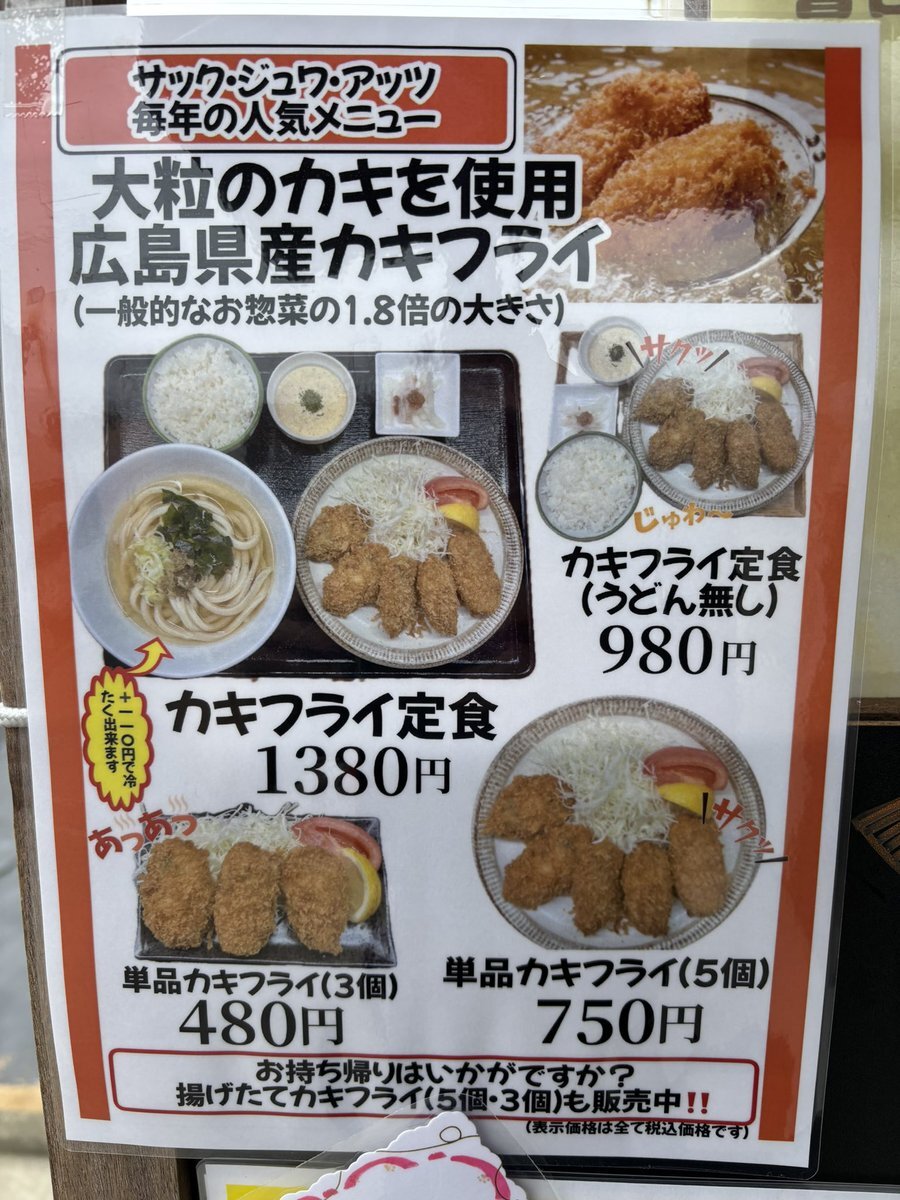 今日からカキフライ販売開始です♪ 大粒のカキフライはいかがですか? サクッとジューシーですよ。 味にも大きさにも大満足間違いなし‼️ どーなっくぅぅにチーズ入りがが仲間入りしました。温めるとさらに美味しいよ😋 #くぅぅ #幸手 #自家製うどんパフェ喫茶 pic.x.com/UItw2PXGVt