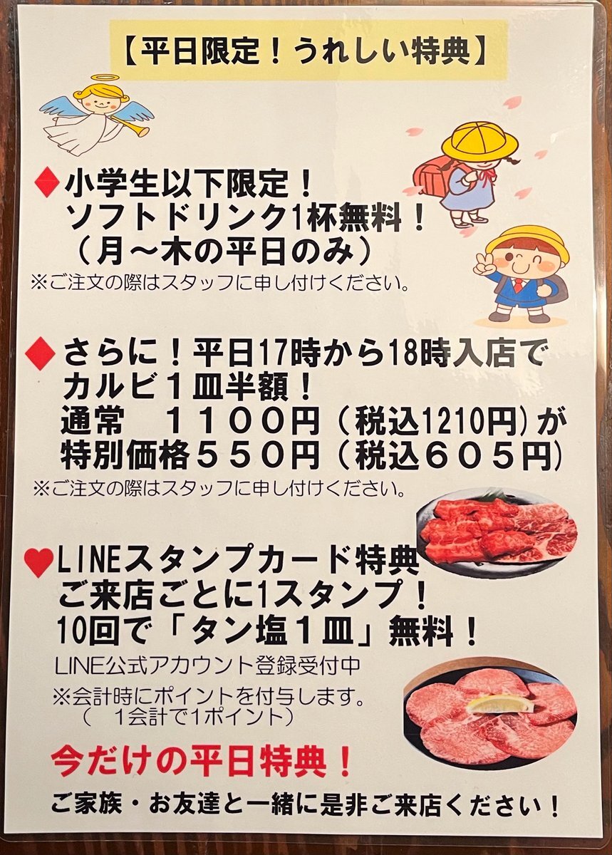 ★☆平日ディナー限定特典のご紹介☆★お子様ドリンク、お肉、LINEスタンプなどお得な特典が盛りだくさん♪♪ #七輪や金剛苑 #金剛苑 #一之江 #江戸川区 #ディナー #焼肉 #新忘年会 #宴会 #グルメ #一之江グルメ #江戸川区グルメ #座敷 #駐車場有 #女子会 #瑞江 #ムグンファ pic.x.com/zR1IZg4j9L