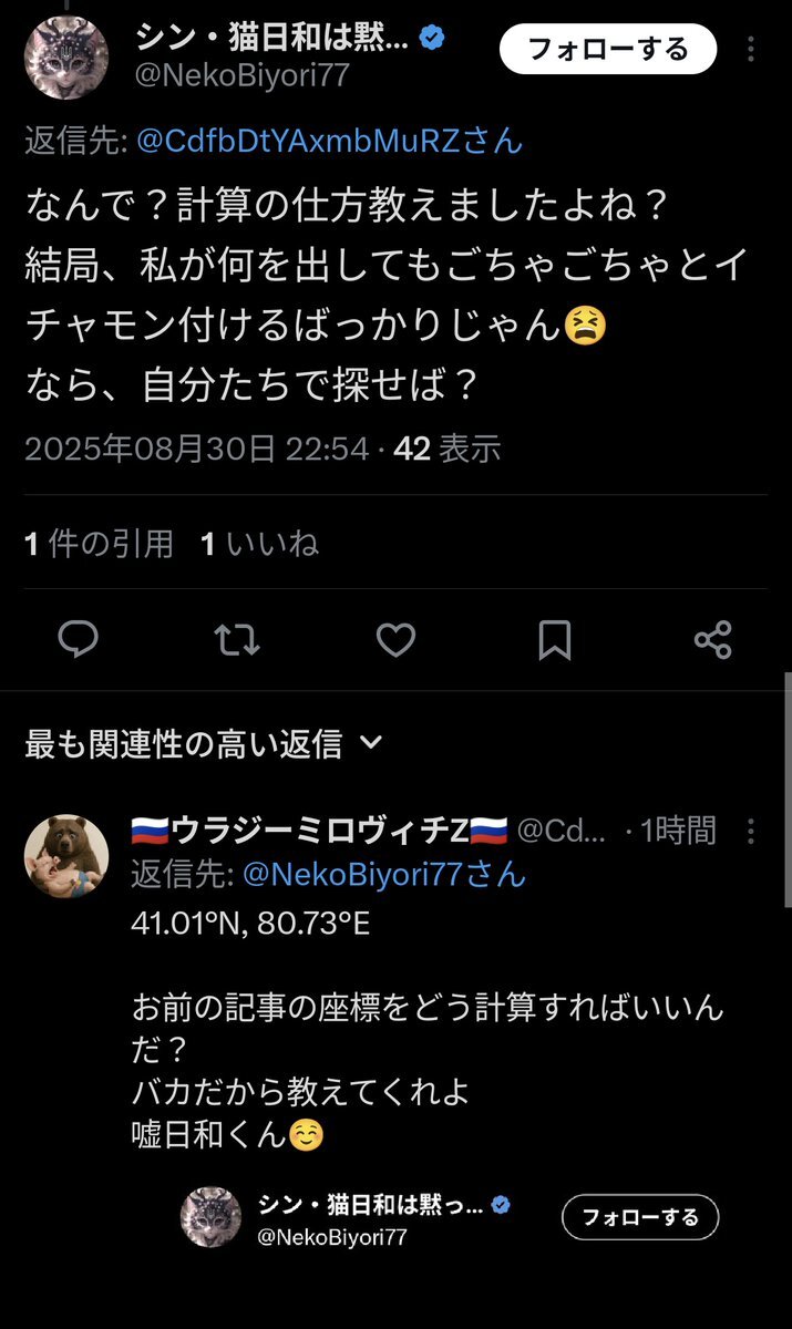 これが単なる誤差だと元自衛隊幹部と主張する猫日和が言ってます 有事の際、果たして我々は自衛隊を信じて良いものでしょうか #自衛隊 #座標 #有事 pic.x.com/zI8wxs3gkG x.com/NekoBiyori77/s…