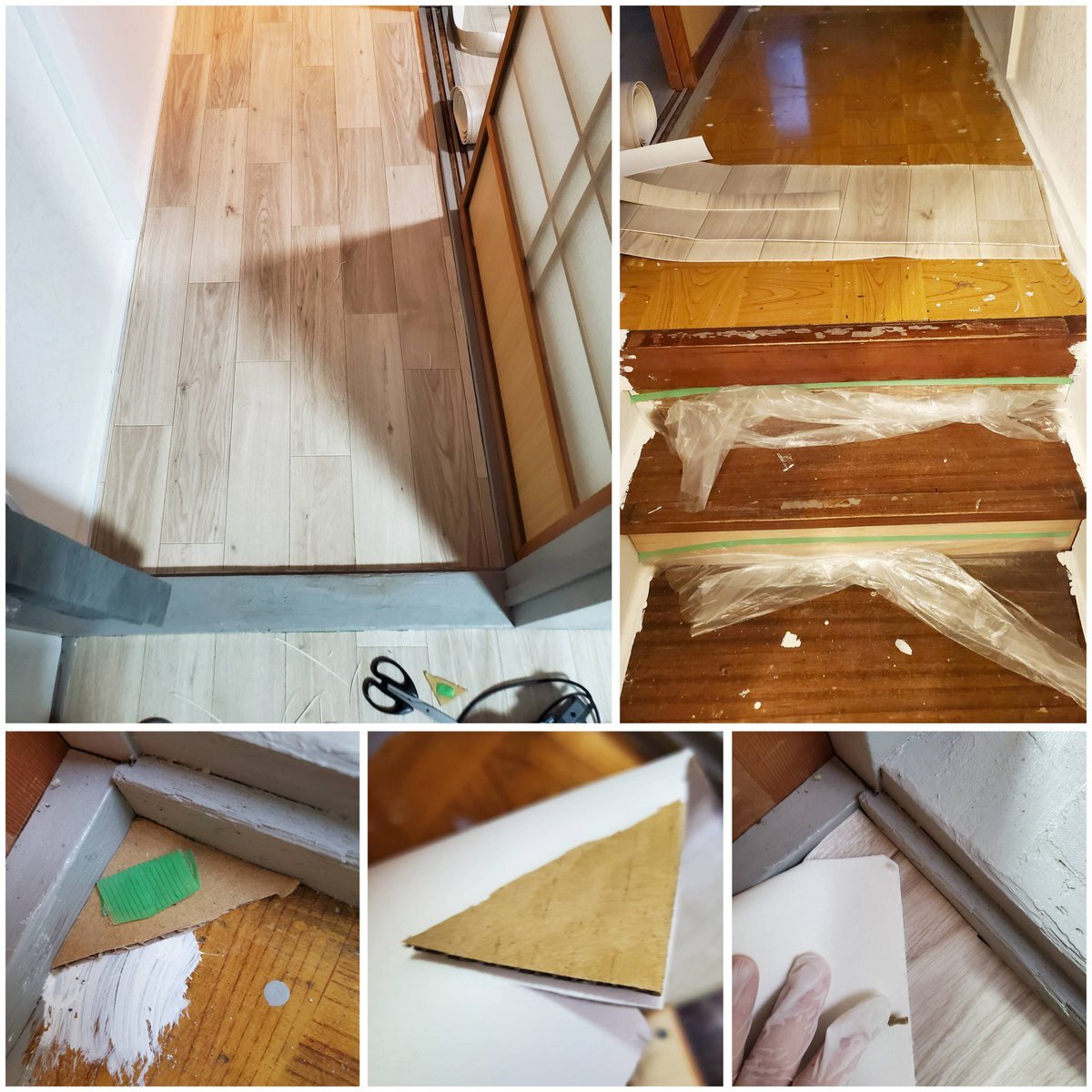 二階の #廊下 で #CF カット作業✂️貼る作業がメインなんやけど、実はボンドで接着する手前までの作業が肝👍ここの具合で仕上がりが全然違ってくる…ってことにだんだん気づいてきました(笑)細かくやってると時間がかかるけどなるべく丁寧にと心掛けてます😊縦ラインも部屋と合わせてみたりして✌️ #DIY pic.x.com/G0KvLIFPcO
