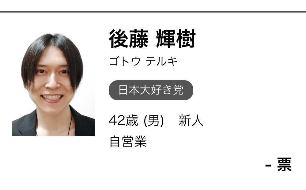 ポスターの写真は、せめてこれくらいに抑えないといけなかったと思う。 #後藤輝樹 #葛飾区議会議員選挙 pic.x.com/zDlkkBtukE