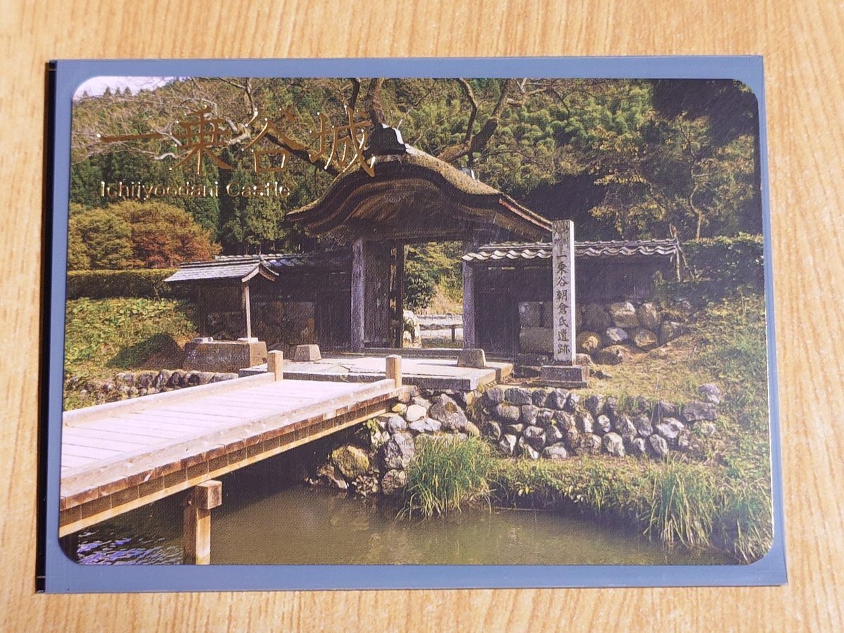 同じく一乗谷朝倉氏遺跡復元町並の南入場口で一乗谷城の城カードと御城印を購入😀11年前は100名城スタンプを収集してなかったので初ゲット😄少し歪んでしまい残念😅 城カードのローマ字Ichijoodaniになってるけどoが1つ多いような?もしくはuかな?🤔 #日本100名城 #城カード #御城印 #一乗谷城 pic.x.com/eDN3at1OzF