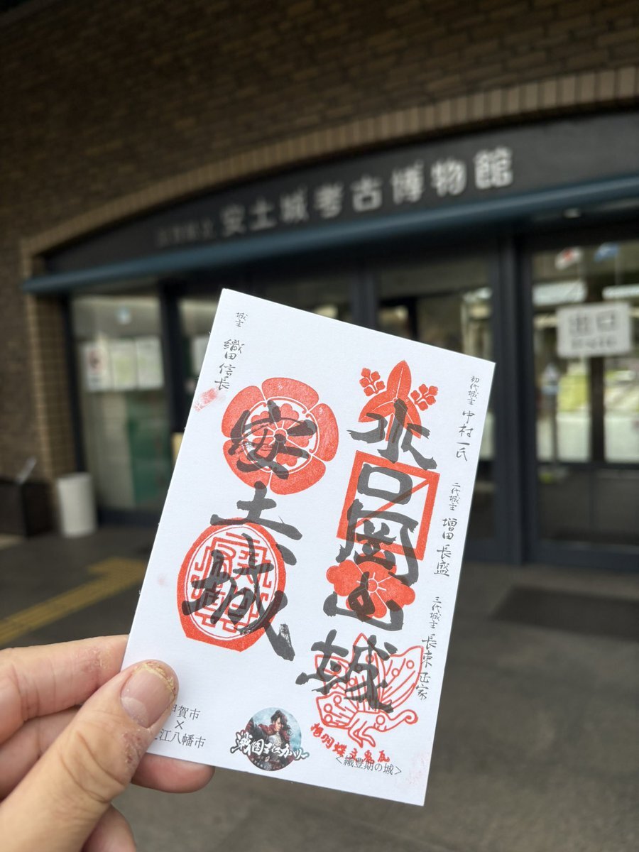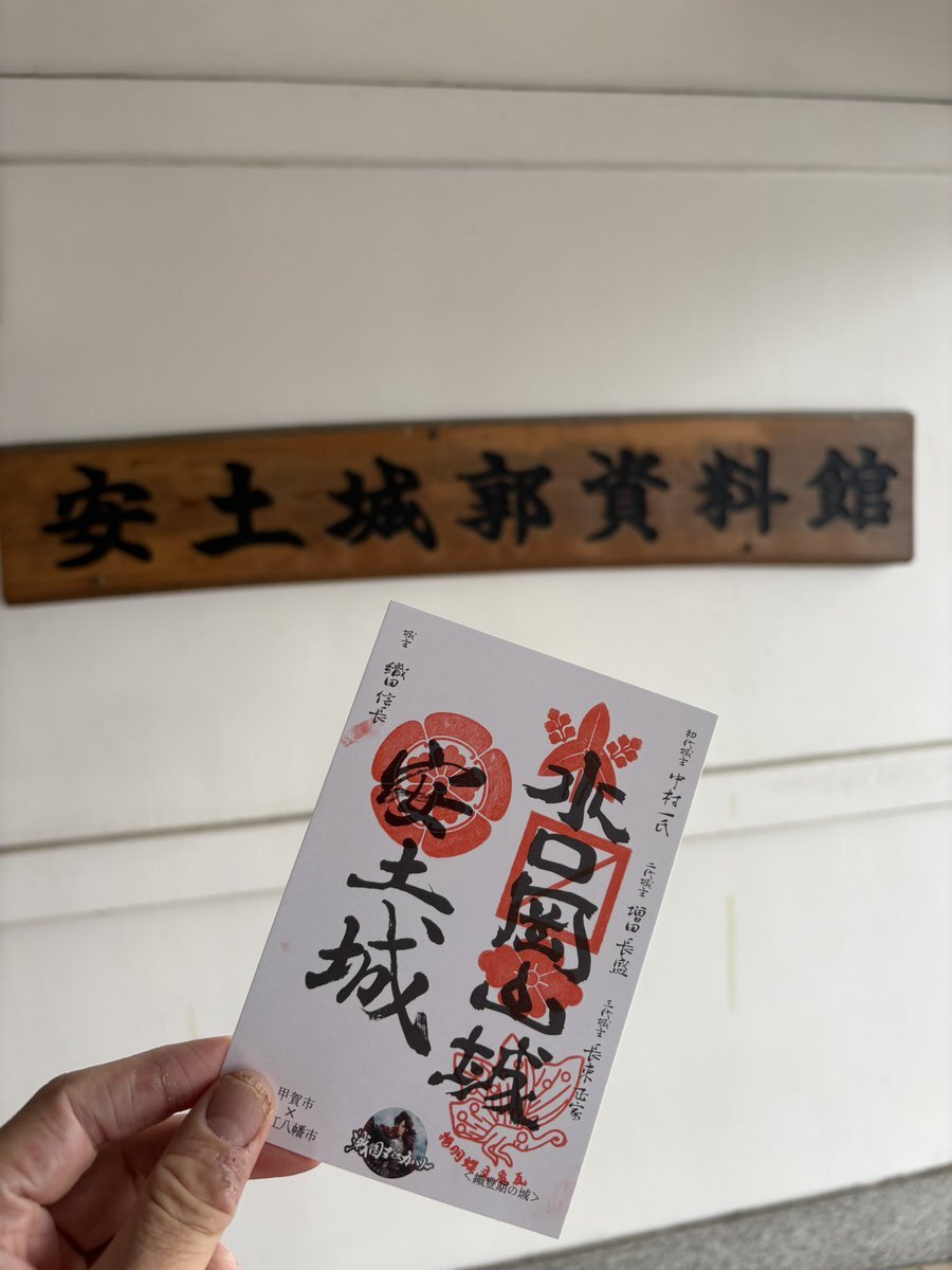 【甲賀市 × 近江八幡市 世界で一つのオリジナル御城印スタンプラリー 織豊期の城編】 安土城築城 450年と豊臣家にゆかりのある2市の各施設を巡り、スタンプを押すとオリジナルの御城印が完成‼️😊 というわけで、安土城郭資料館のスタンプをゲットだぜ‼️😆 #御城印 #安土城 #水口岡山城 pic.x.com/R8Sad9JmVr