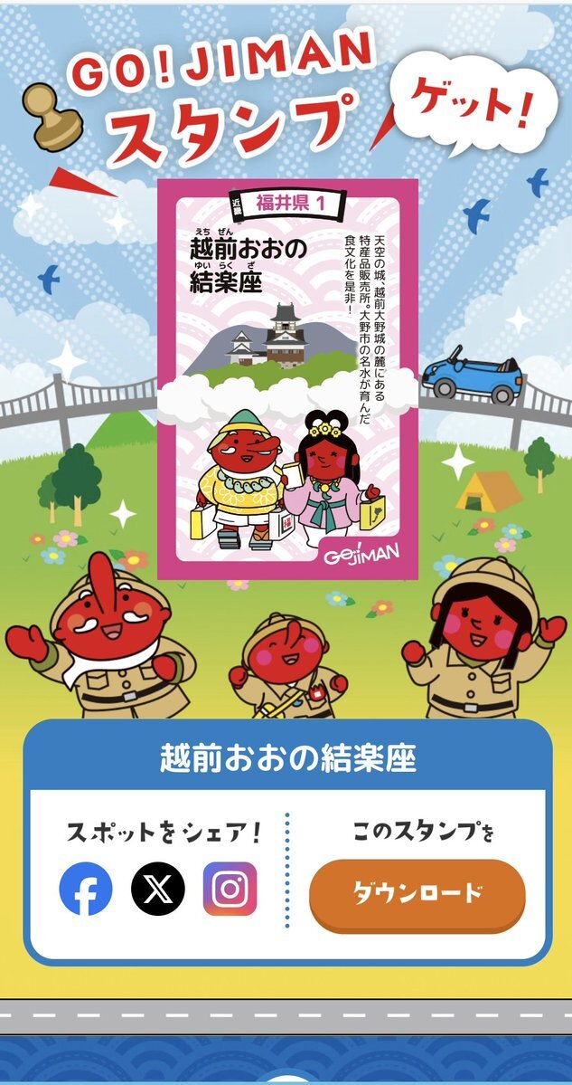 越前大野城を見るのも11年ぶりでしたが、時間がなく今回は登城せず。 城下の越前おおの結楽座で城カードと御城印のみ購入😄ごじまんスポットも発見! #続日本100名城 #城カード #御城印 #越前大野城 #お国じまんデジタルラリー2025 #GOJIMANスタンプ pic.x.com/fd6l7uxyh7