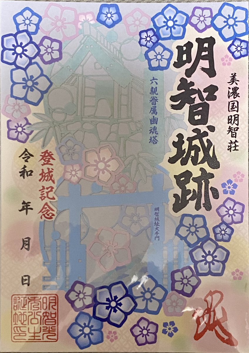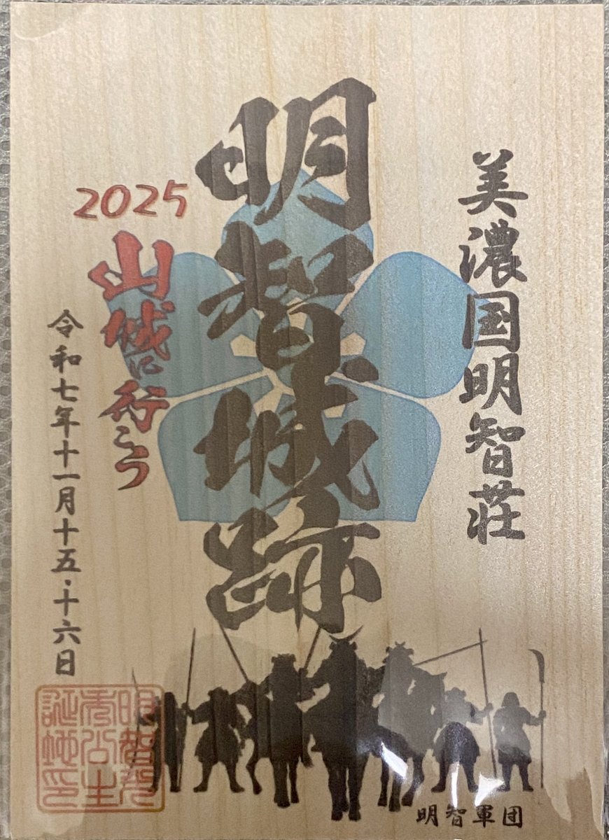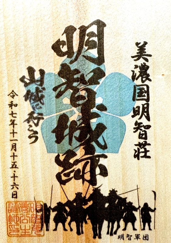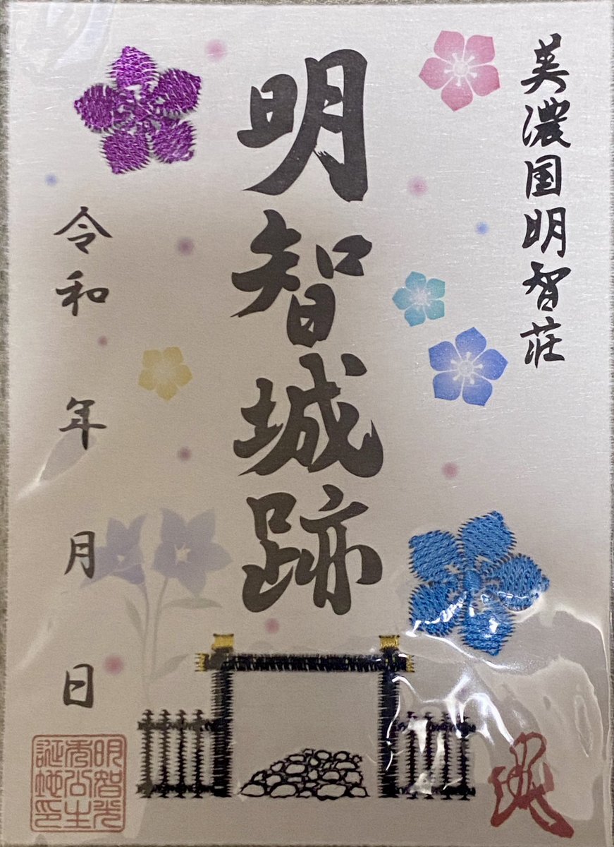 明智城 #御城印 ①木のやつ ②重ね切り絵ちゃん ③モコモコ桔梗ちゃん pic.x.com/N1WDEhyfuH