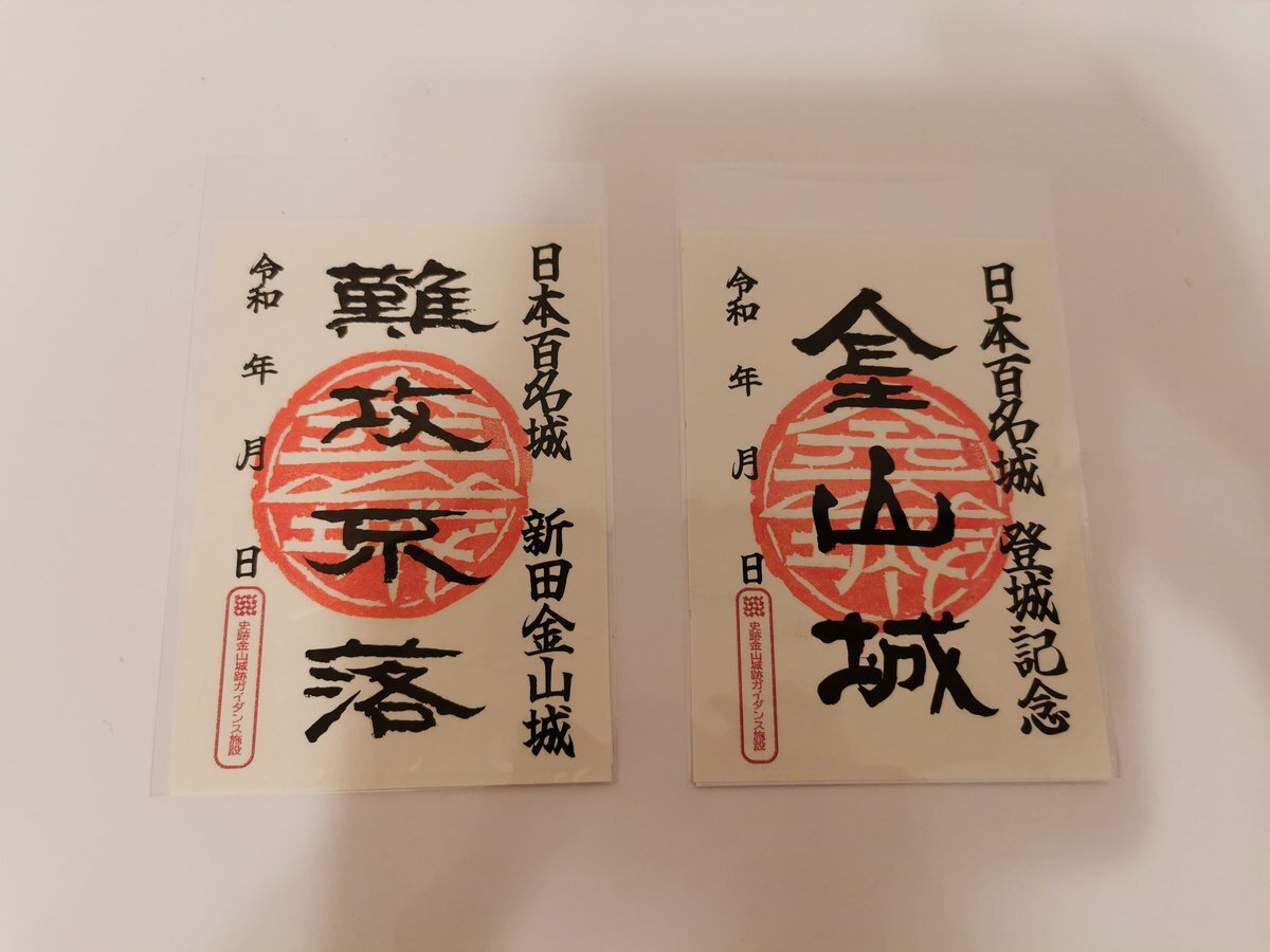 金山城の戦利品。 1️⃣2️⃣新田金山城ガイドブック。 200円で破格の内容。城攻め前の入手必須。 3️⃣御城印 通常版が二種類。各300円。 4️⃣御城印 期間限定版。300円。 全て金山城跡ガイダンス施設にて販売。 #金山城 #新田金山城 #御城印 pic.x.com/JI5x81C3XI