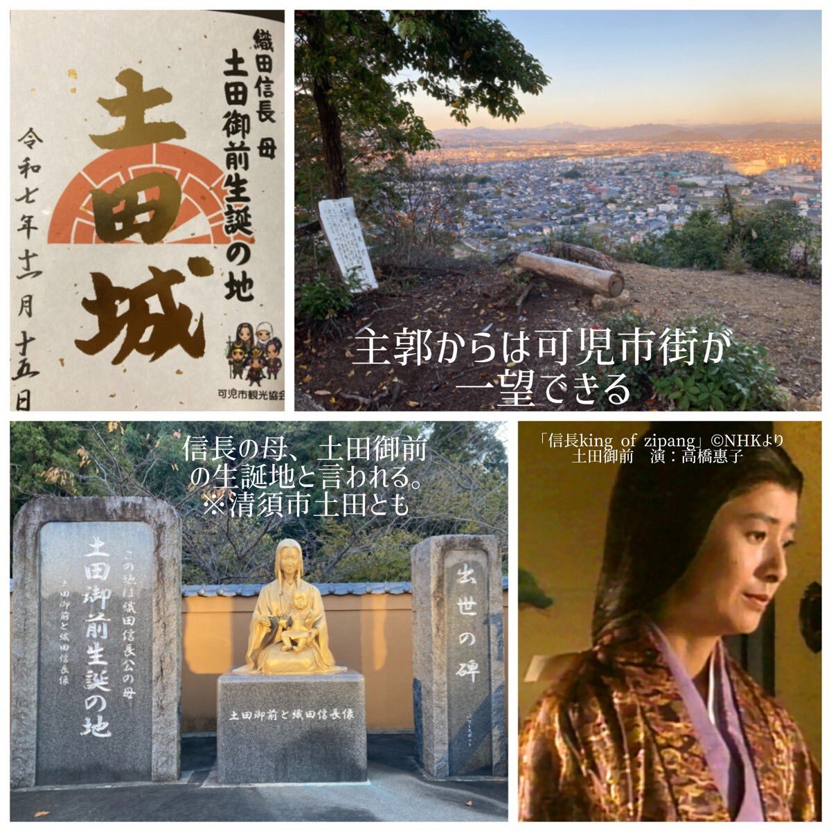 土田城[岐阜県可児市] ○時代区分➡️戦国時代 ○関連人物➡️土田政久、生駒親重、土田御前? 土田氏の居城で、信長の母、土田御前の生誕地とされます(清須市土田という説も)。土田源太夫が討ち死にし、親戚の生駒親重が城主を兼任しましたが、子の親正と共に信長に仕え、使われなくなりました。 #御城印 pic.x.com/Jl8Dlp5tI2