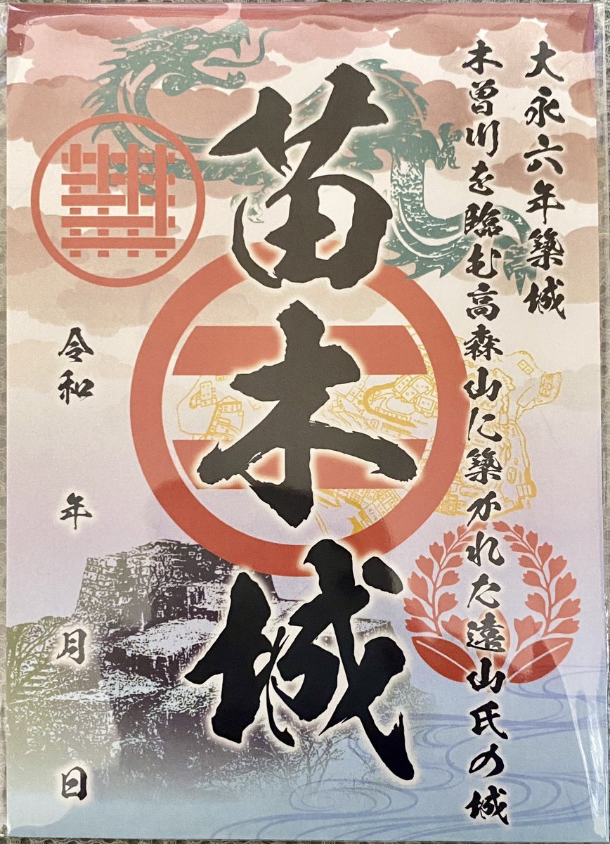 苗木城 #御城印 ①2025年バージョン🆕 ②重ね切り絵バージョン #山城に行こう pic.x.com/Cm7EBtDTOz