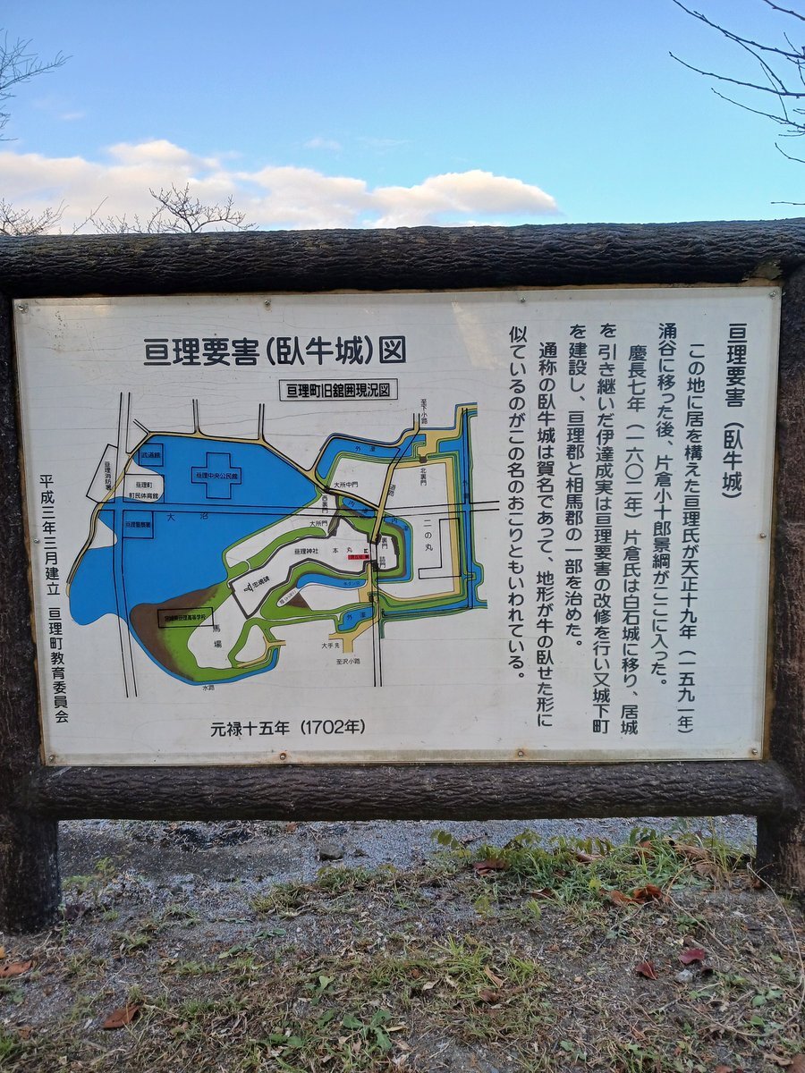 亘理要害(臥牛城)跡を散策🏯🚶 伊達成実公の城🏯🐛 本丸には亘理神社が鎮座し、二ノ丸にはスーパーが😅 唯一の遺構が内堀のみ 亘理は、けっぱって東北の小日向あおいさんの故郷 あおいさんも、この城跡訪れたことあるのかな🤔 悠里館で御城印手に入れました😁 #亘理要害跡 #御城印 #亘理町 pic.x.com/tiCDGdLz0U