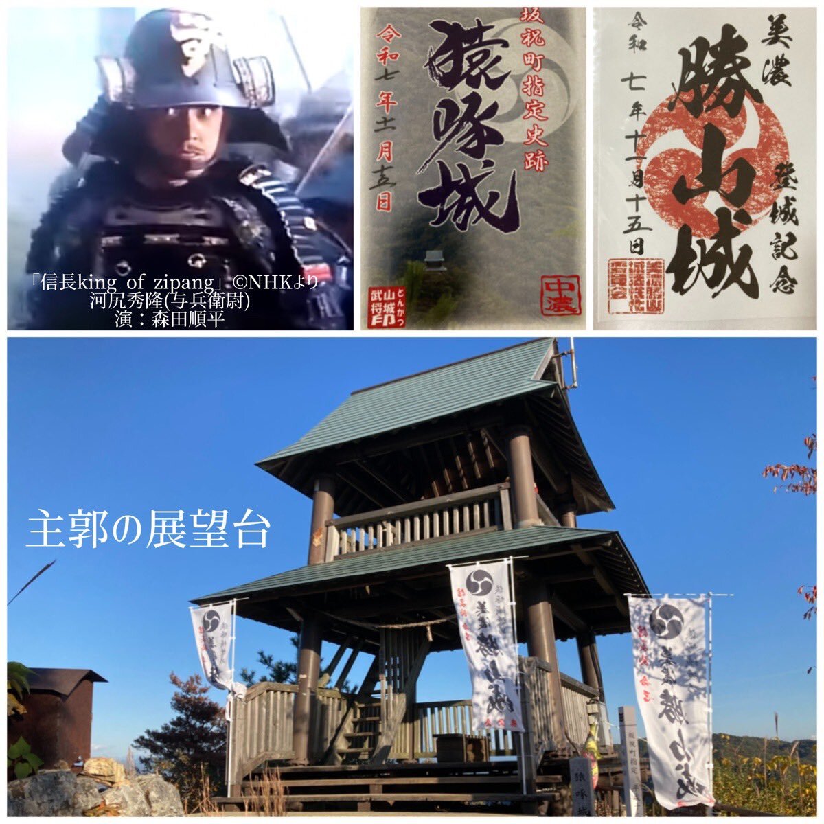 猿啄城(さるばみ)→勝山城[岐阜県坂祝町] ○時代区分➡️戦国時代 ○関連人物➡️田原左衛門尉、多治見修理、河尻秀隆 信長の美濃攻めで丹羽長秀に攻め落とされ、その後は河尻秀隆(織田軍団の中で知名度は薄いですが…)が城主となり、岩村城に移るまで使われました。木曽川の絶景が楽しめます。 #御城印 pic.x.com/bQGto6zXkZ