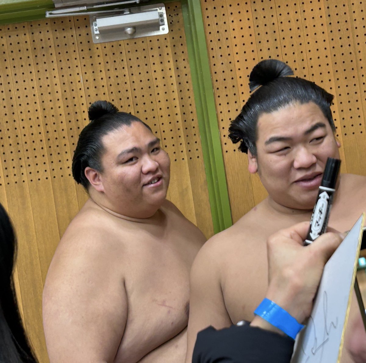 #御嶽海 みーたんと正代関 仲良しふたりの掛け合いが初切よりもおもしろいと評判なんだって😁 御嶽海後援会様インスタより instagram.com/p/DSCUuboiVCl/… pic.x.com/hklGcTW1TK