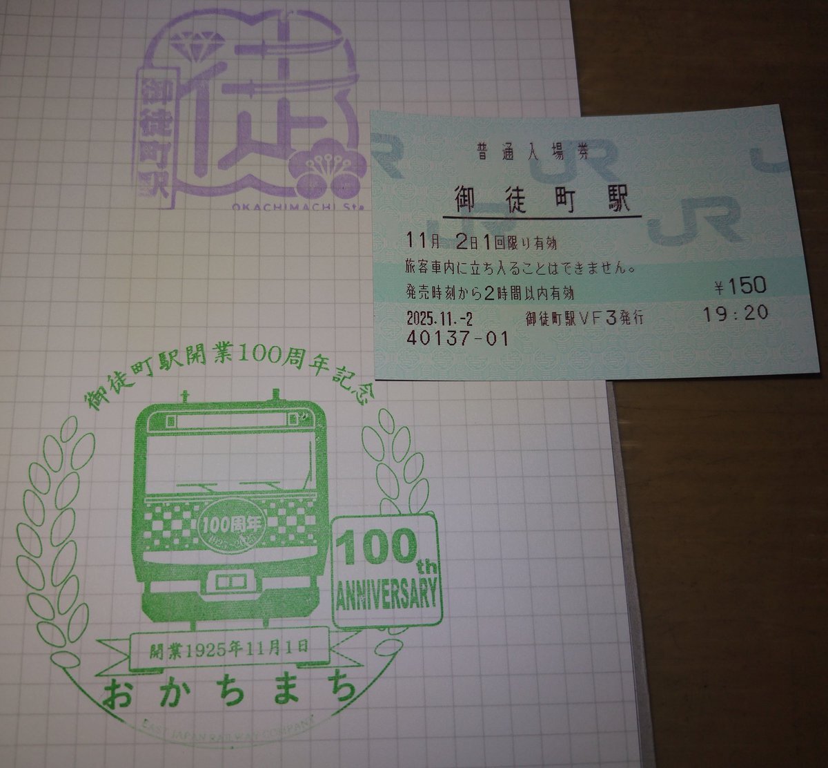 土休日ダイヤ時のみ京浜東北線の快速が停車し、JESS委託の御徒町【上野統括センター】の3台あるうちの真ん中のMV50で入場券を買い、常設の首都圏本部印と期間限定の開業100周年記念スタンプ(明日まで?)を押印しました😊😊 カスレなし♪ #御徒町駅 pic.x.com/xivdKTvOPt