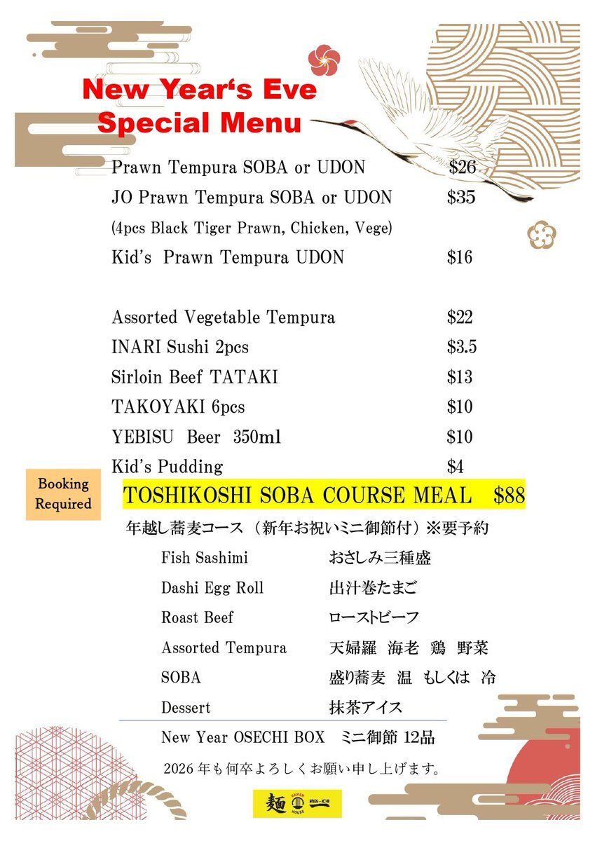 大晦日限定年越しそばスペシャル 元旦に楽しんで頂けるミニ御節付きコースです(要予約) 御予約状況 18時 △ 19時 ◯ 20時 × 21時 △ お早めにお問い合わせください DMお待ちしております アラカルトご希望の方も予約お願いします #オークランド #年越しそば #御節料理 pic.x.com/LGs1dsbNpt