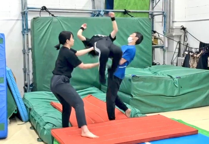 57歳オッサンと生徒さんの練習より。AAC STUNTS GYM(#アクション教室)生徒さん頑張ってます。技を身に付けたかったら練習をするしかない練習をしないで上手くなった人は、いないでしょ #アクション に興味がある人、誰でも参加が出来るので難しく考えずに一度おいでよ。場所は #御茶ノ水駅 からすぐ pic.x.com/q6sZNaJicG