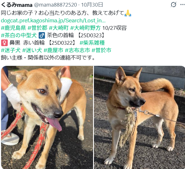 #拡散希望 📢ご存知のワンちゃんで🐶ゆきち君に似たコいませんか❓️ 【#鹿児島県迷子犬】 #柴犬 #豆柴 🐶ゆきち君🐶 #迷子犬 #迷い犬 #保護犬 🟡2025/5/23迷子 #志布志市 #有明町野神 📢#目撃 #保護 等や些細な事でもあればご協力を🙇 maigo-pet.net/dog/24703 x.com/gY2TiUbn6e8e6K…