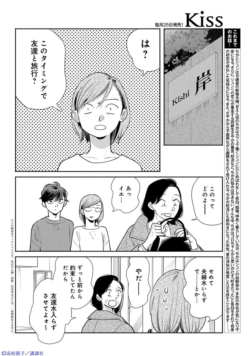 💛 Kiss12月号 絶賛発売中 💛 『#ハツコイノツギ』第19話が掲載! 父の昔の「浮気」を許すことができない、ちか💦 しかも、このタイミングで母が旅行へ…🚅! さらに気まずい父もおじ宅へ逃亡💨! 思いがけず、夫婦二人きりになり…? 📍②巻まで絶賛発売中! #志村貴子 @takakoshimura pic.x.com/lv9LwNfrFp