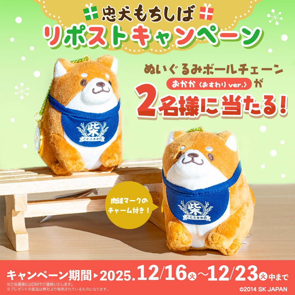 【#忠犬もちしば リポストキャンペーン🎁】 手のひらサイズの「ぬいぐるみボールチェーン(約H10cm)」を抽選で2名様にプレゼント✨ <応募方法> ①本アカウント(@c_mochishiba)をフォロー ②こちらのポストをリポスト(12/23まで) ※ご当選はDMでお知らせいたします。