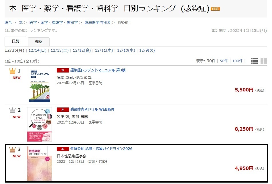 【新刊のご案内】 『性感染症 診断・治療ガイドライン2026』もうすぐ発売となります! Amazon泌尿器科部門で2位,楽天ブックス感染症部門で3位と,ご期待頂きありがとうございます! 12/20より開催の「日本性感染症学会」で販売いたしますので,ご来場の際は書籍へぜひお立ち寄りください!#性感染症 pic.x.com/THg23OS5jo