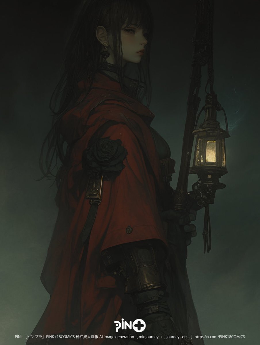 霧に包まれた古い山道。 提灯の揺らめく灯りが、 闇をわずかに切り裂く。 赤いマントを纏った女が、 ゆっくりと近づいてくる。 彼女の瞳は、 底知れぬ闇を湛え、 黒い薔薇が肩に絡みつくように咲いている。 Kaiden challenge #怪談 #pink18comics #nijijourney pic.x.com/ha61GsOJTf