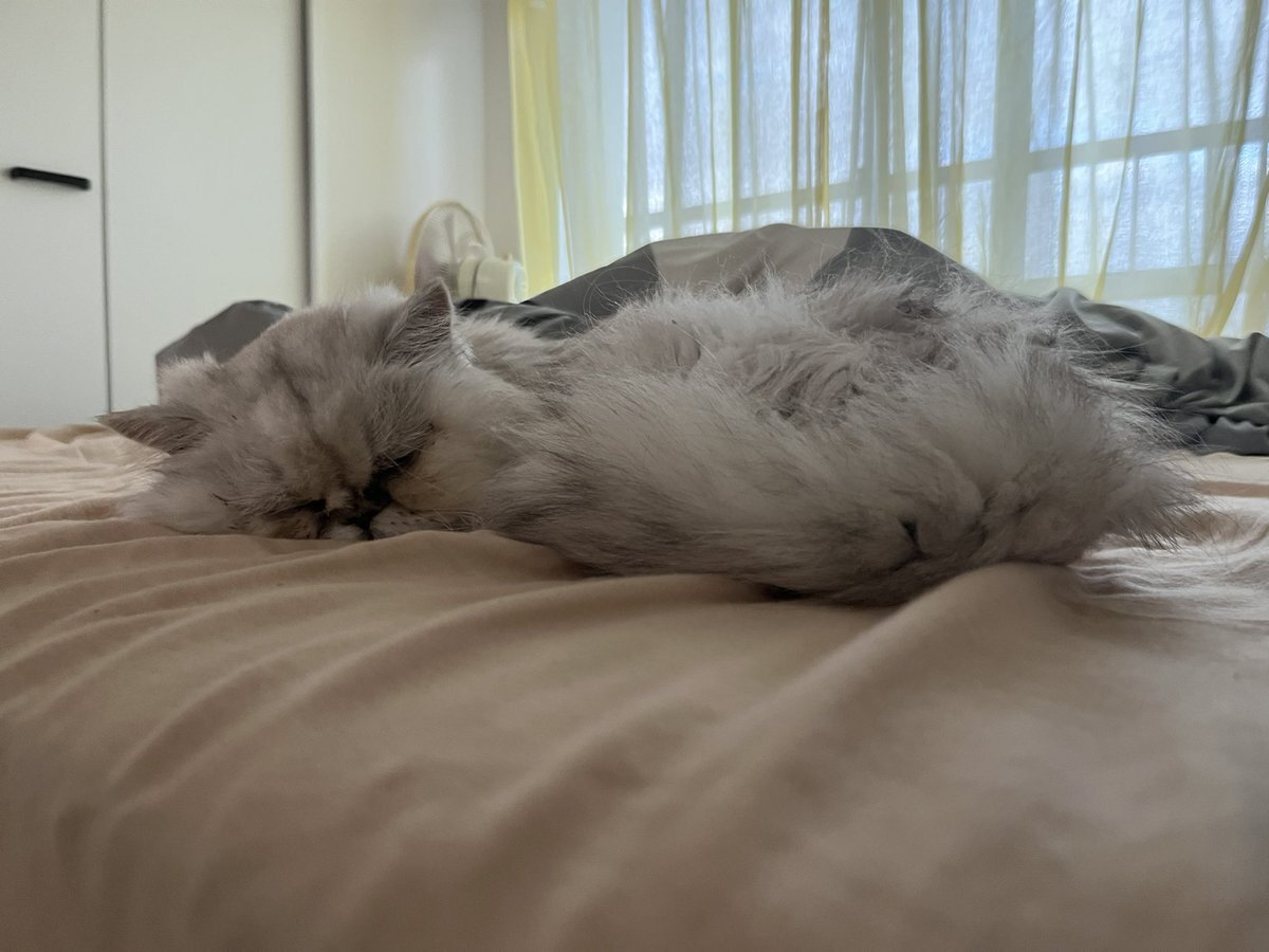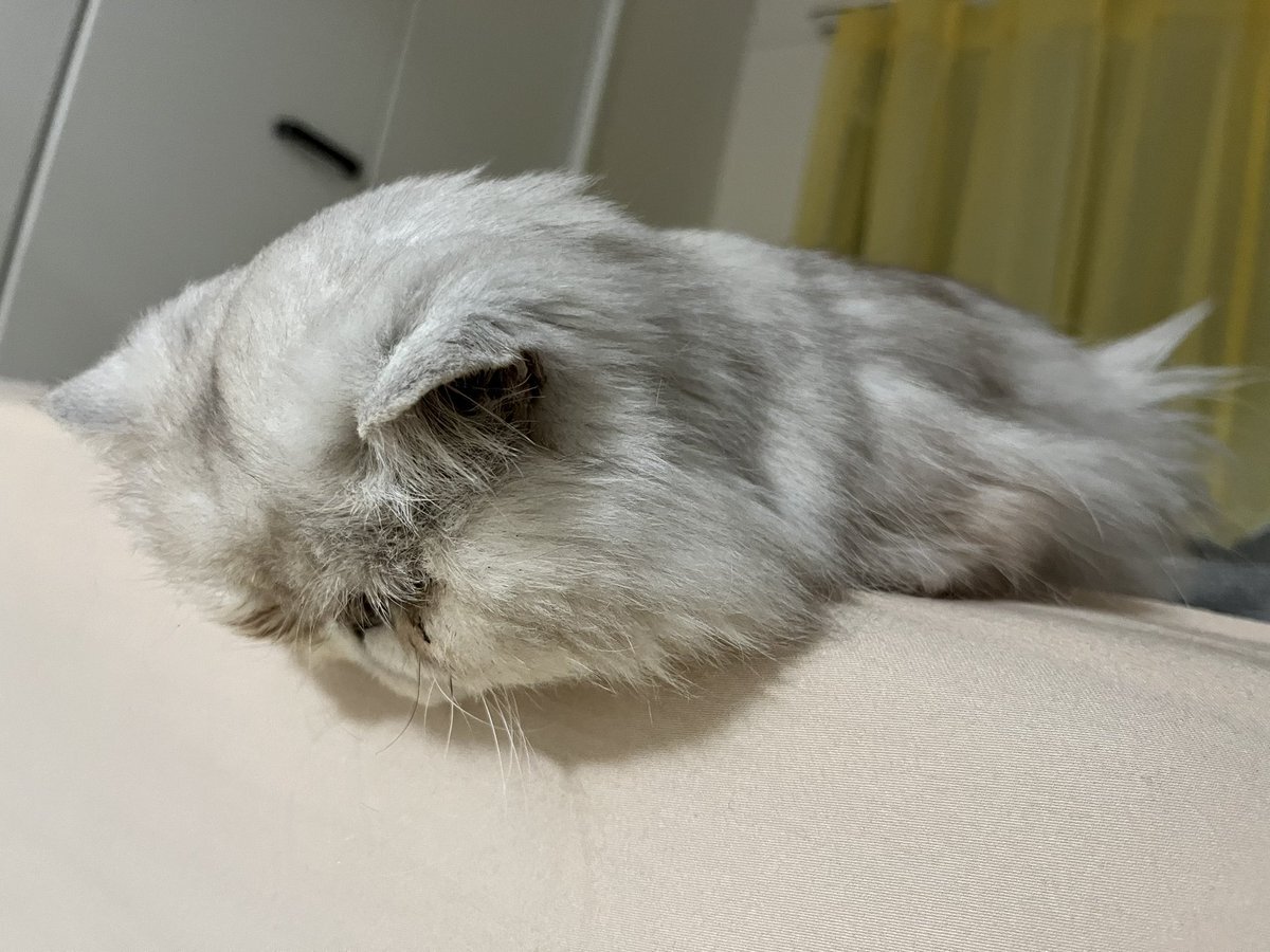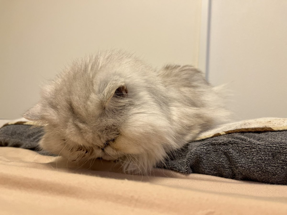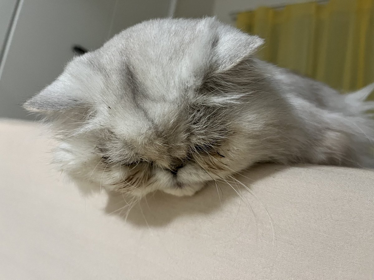 #慢性腎不全 533日目 やっぱり動いてる時に撮らんとこればっかりになるなぁ、でもその動き回る時ってのが帰宅してバタバタしとる時やからおれが落ち着いたらこーなっとるんよねー。 #チンチラシルバー pic.x.com/HIxjPTTE5I