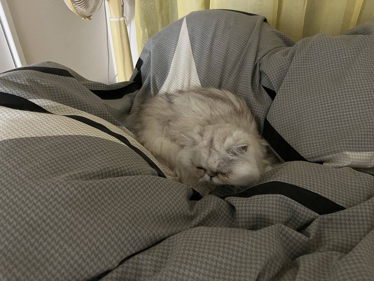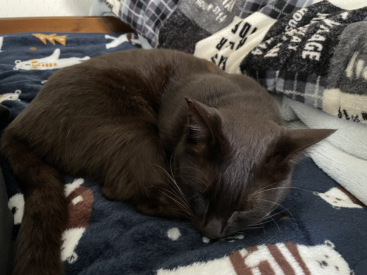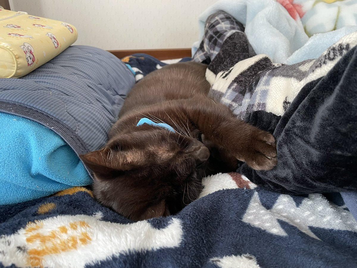 診断されて269日目 おNewの毛布で抱き枕と枕の間で寝るおくう様 カリカリの方を割と食べていたみたいでパウチの方を半分〜半分ちょいほど残してました ま、空腹になったら食べるんだけどね #慢性腎不全 pic.x.com/SCbXI0SD4l