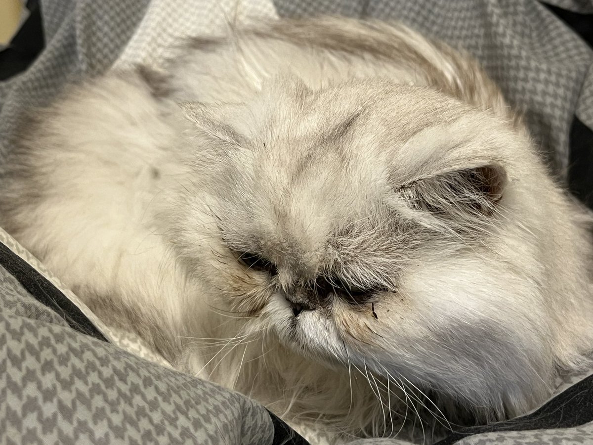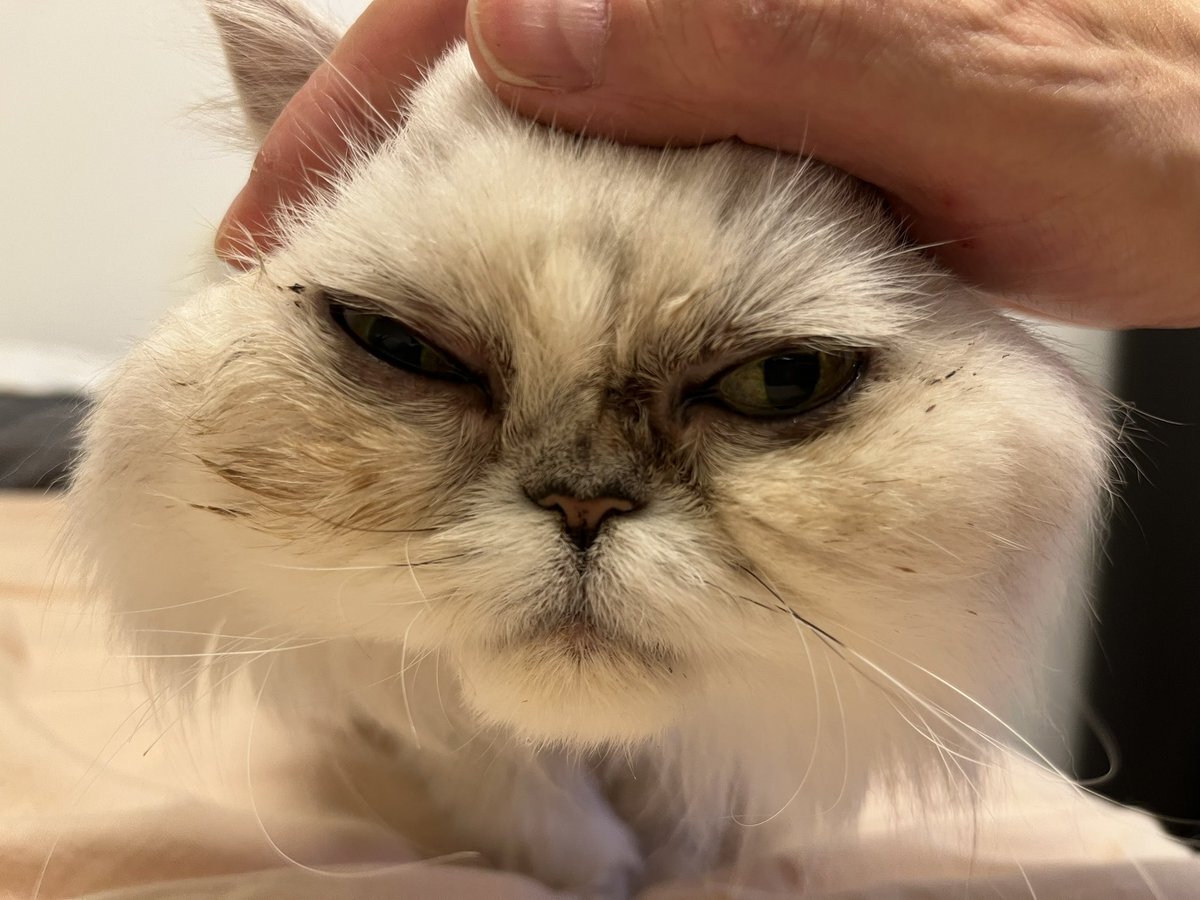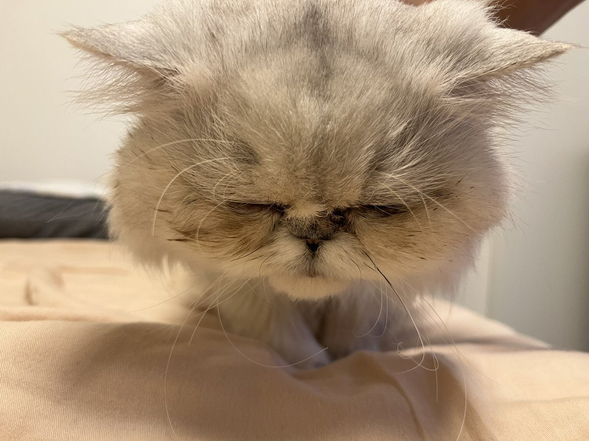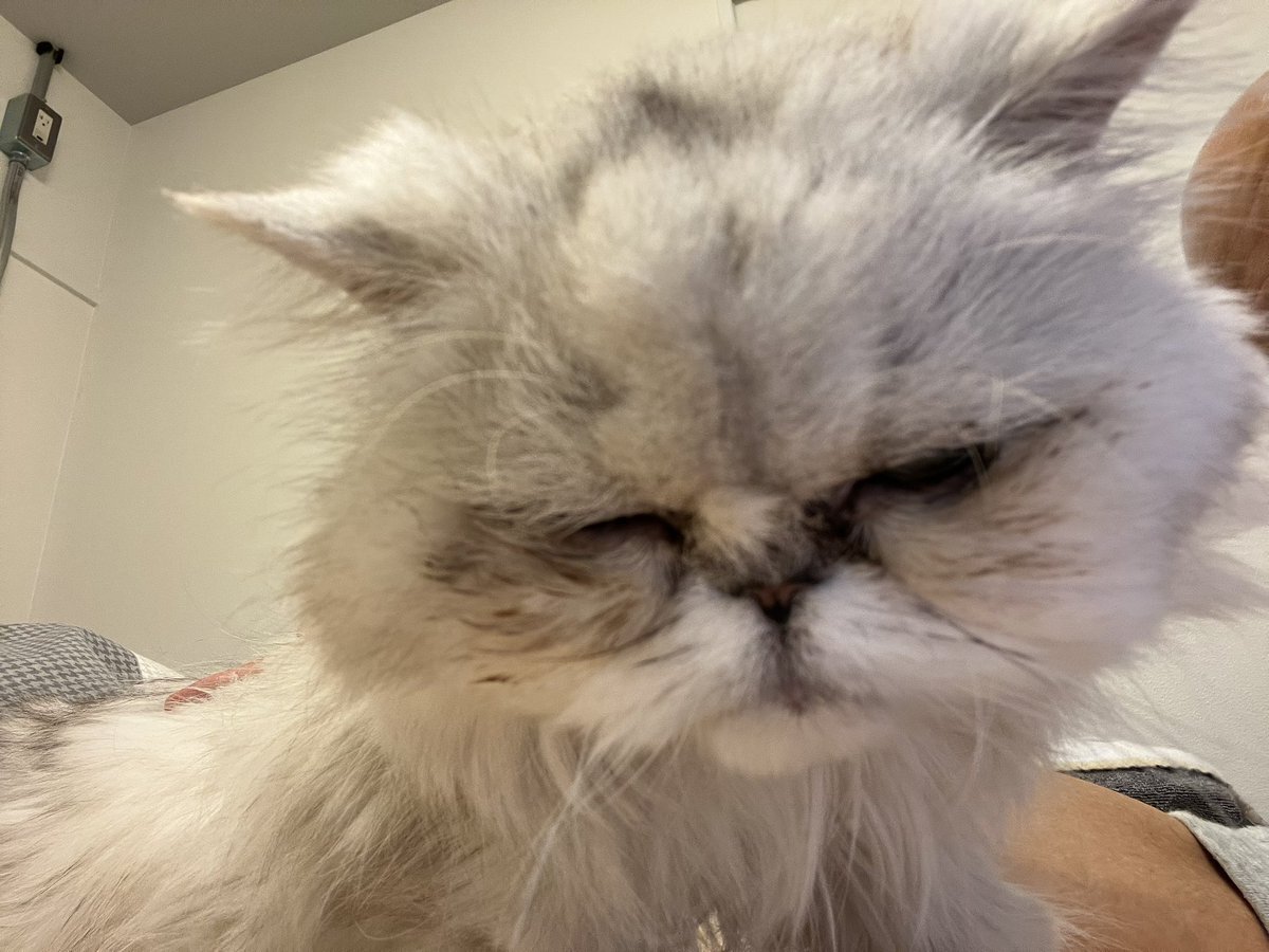 #慢性腎不全 543日目 ちょっと良くなってる気がする。 そこまで開けにくそうじゃないし、 右目の下のほっぺにちゅーるが付いて固まってたの見て拭き取ってみたらなんかマシになったような気がするけど、明日病院で聞いてみよ。 #チンチラシルバー pic.x.com/UgxENHrXGi