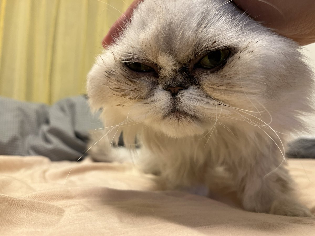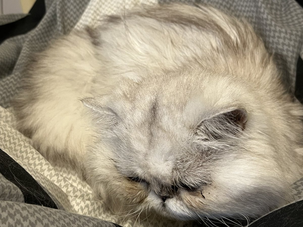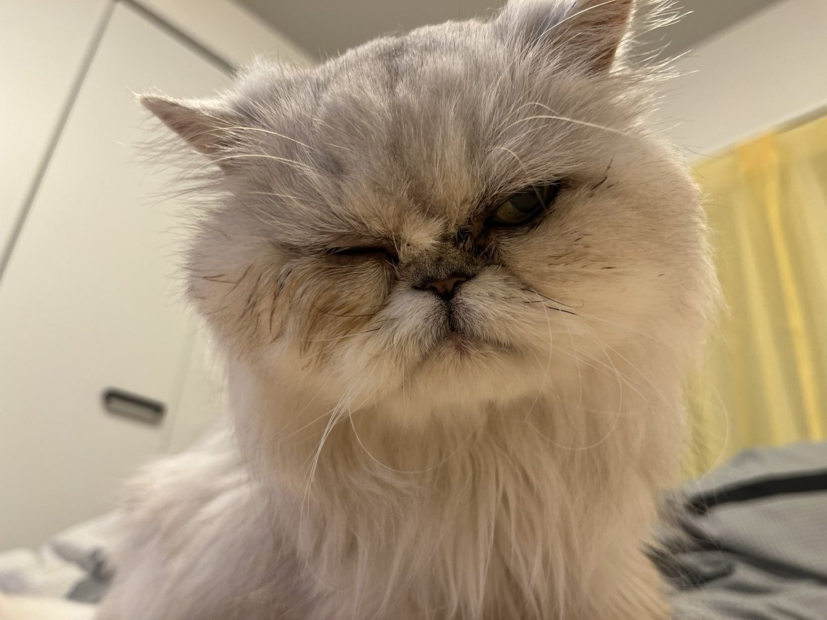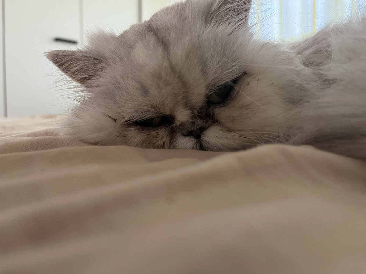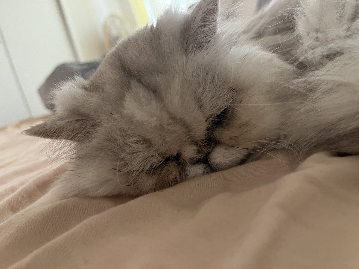 #慢性腎不全 543日目 ちょっと良くなってる気がする。 そこまで開けにくそうじゃないし、 右目の下のほっぺにちゅーるが付いて固まってたの見て拭き取ってみたらなんかマシになったような気がするけど、明日病院で聞いてみよ。 #チンチラシルバー pic.x.com/UgxENHrXGi