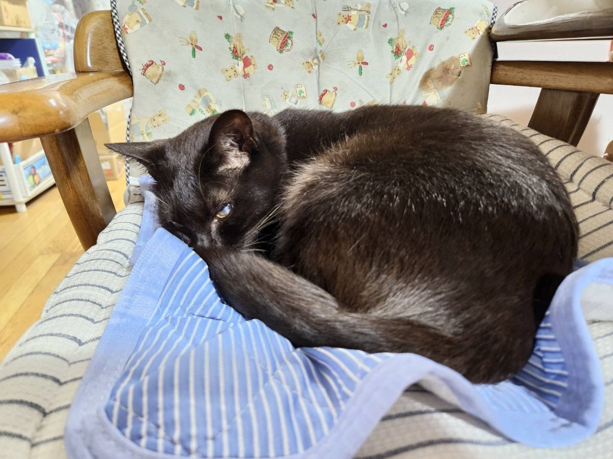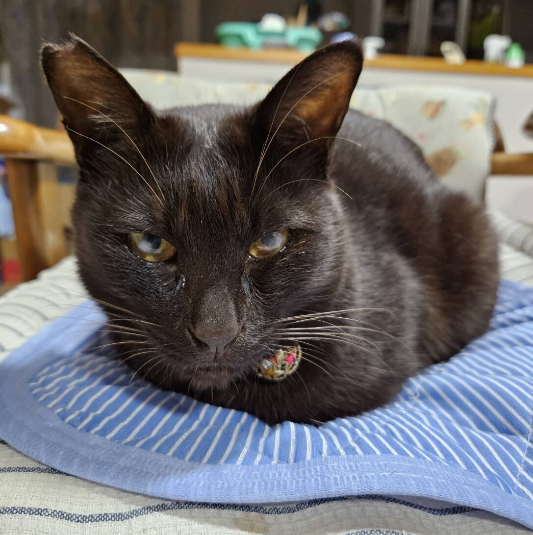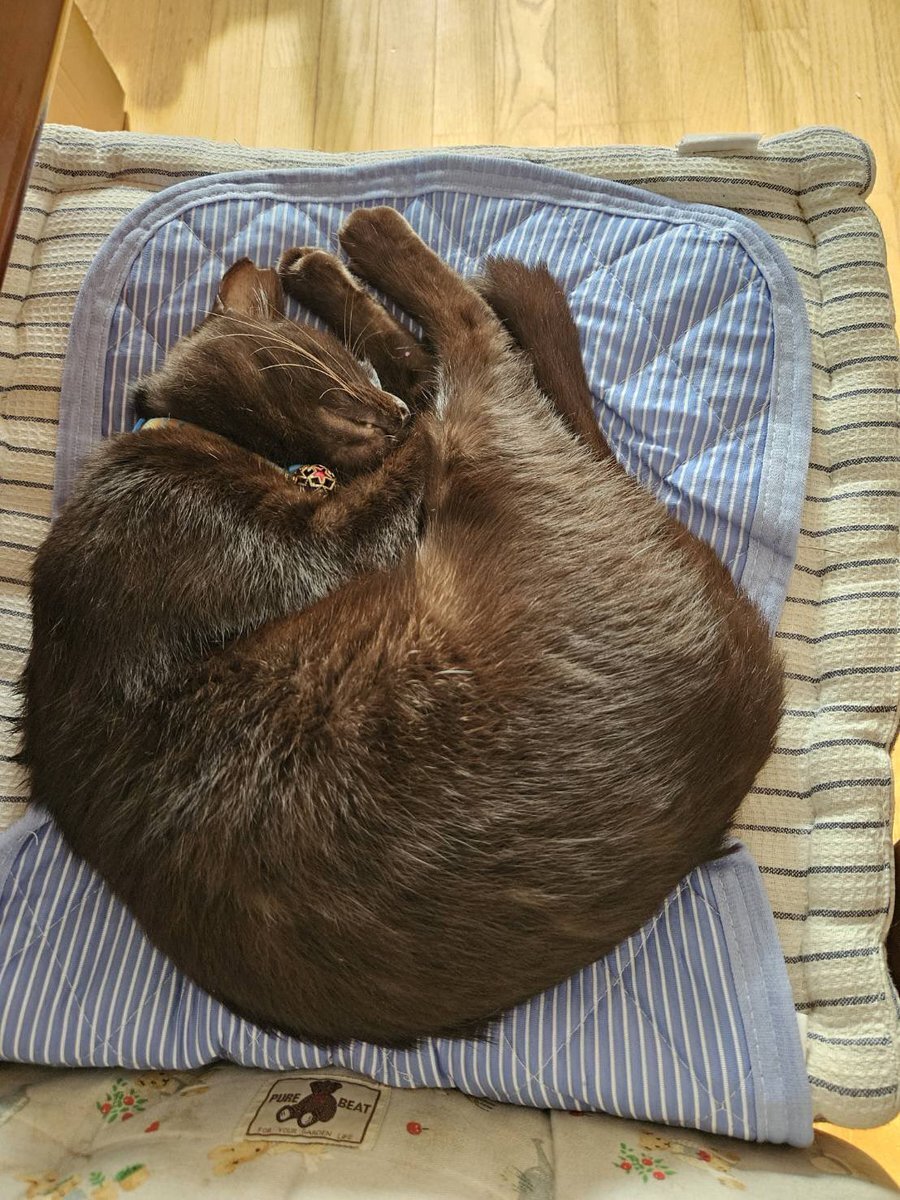 もったん、便意がきて2回ゲーしてしまうも「出ないよー出ないよー」を繰り返したのちにやっと立派に解消した朝🌟最近朝イチの空腹ゲーも増えてきたが、それは室温で冷えた水を飲むせいかもしれない。腎臓の数値が悪化してないといいなぁ。来週病院。 #老猫 #慢性腎不全