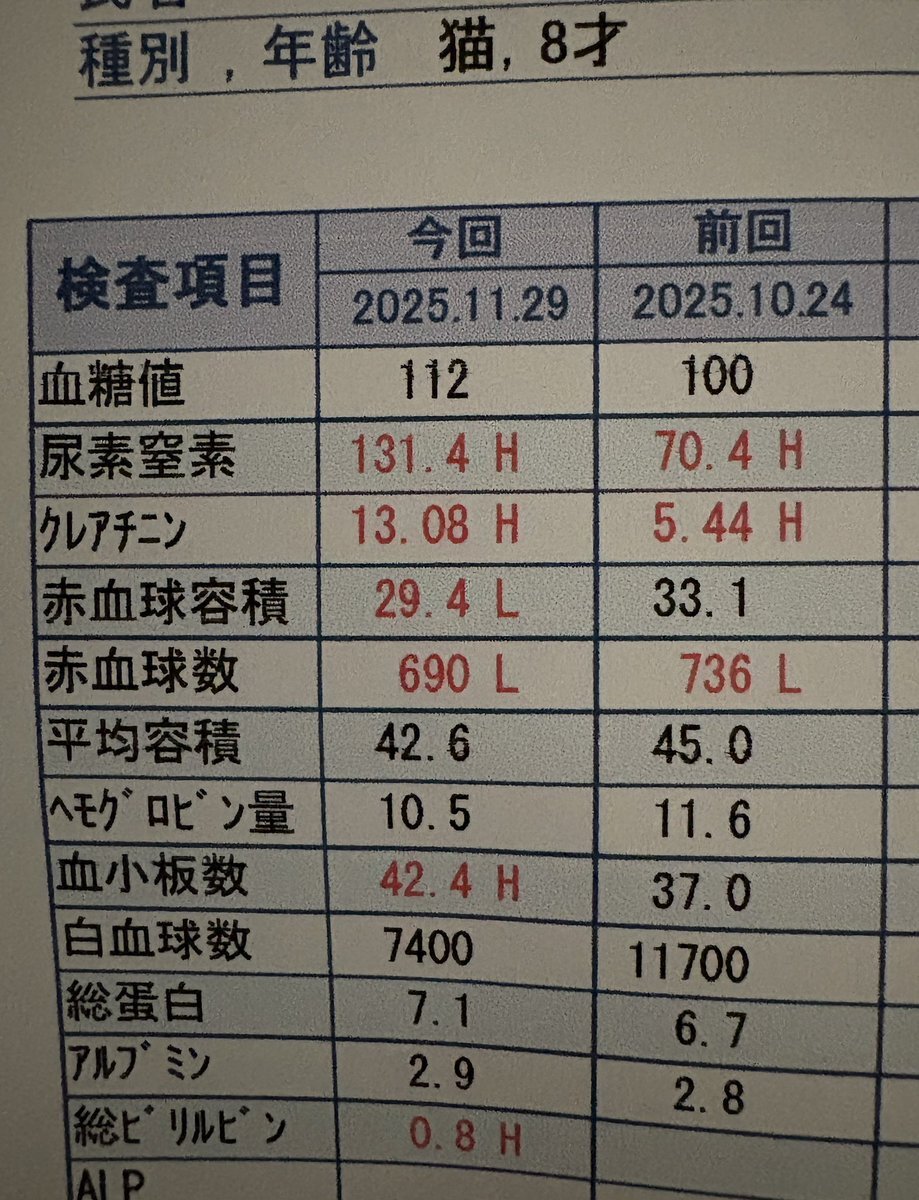慢性腎不全ステージ4の愛猫のデータです。何か些細なことでもいいのでアドバイスお願いします。 #慢性腎不全 #慢性腎不全猫 #猫と暮らす生活 #ステージ4 #慢性腎不全ステージ4 pic.x.com/BGhZl55vaS