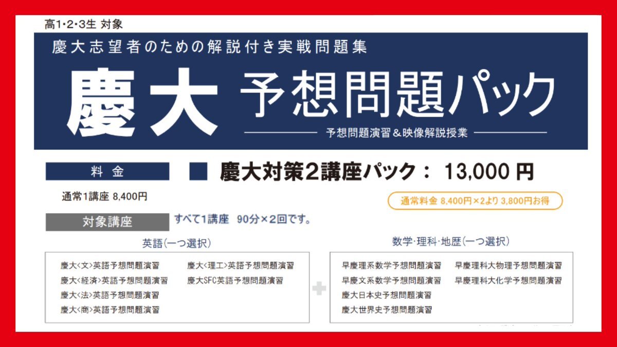 【 #慶大 志望者必見👀】 #慶應大学 の出題傾向・問題傾向に完全一致したオリジナル予想問題が、場所・時間を問わず受講できます! 代ゼミ講師による解説つき✍合格へ一歩近づくチャンスです😊 詳細は代ゼミ大阪南校へお問い合わせください。 pic.x.com/O3odTakqIg