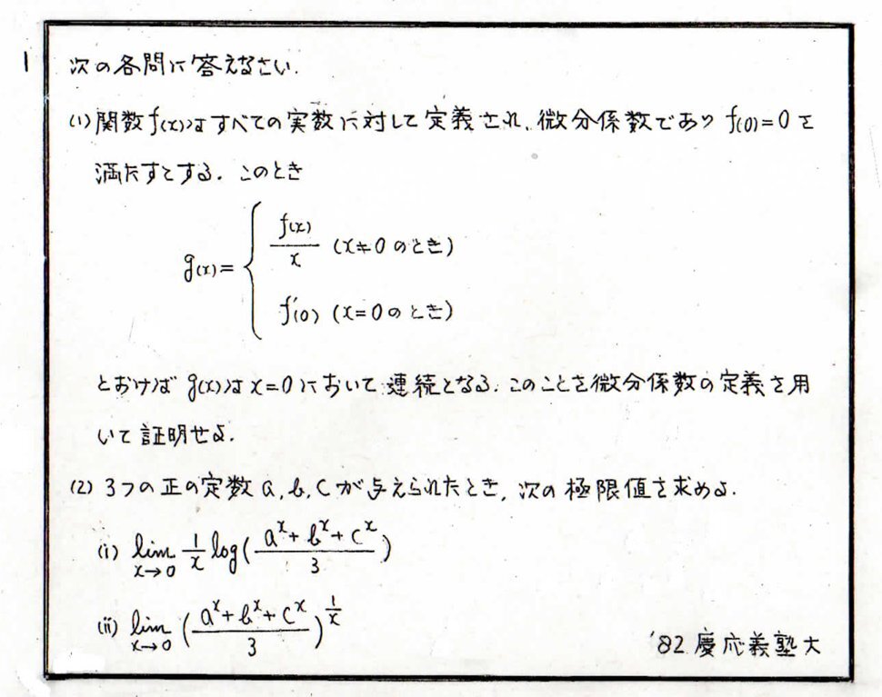 【数Ⅲ 微積分演習編✍】 -第1日目- ●微分 慶應義塾大学(1982) 解答は10月29日(水)20時頃にアップします。 #受験数学 #慶應大学 #微分 pic.x.com/vcuQOooqdE