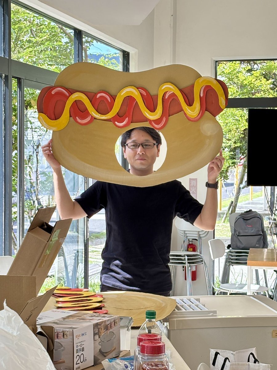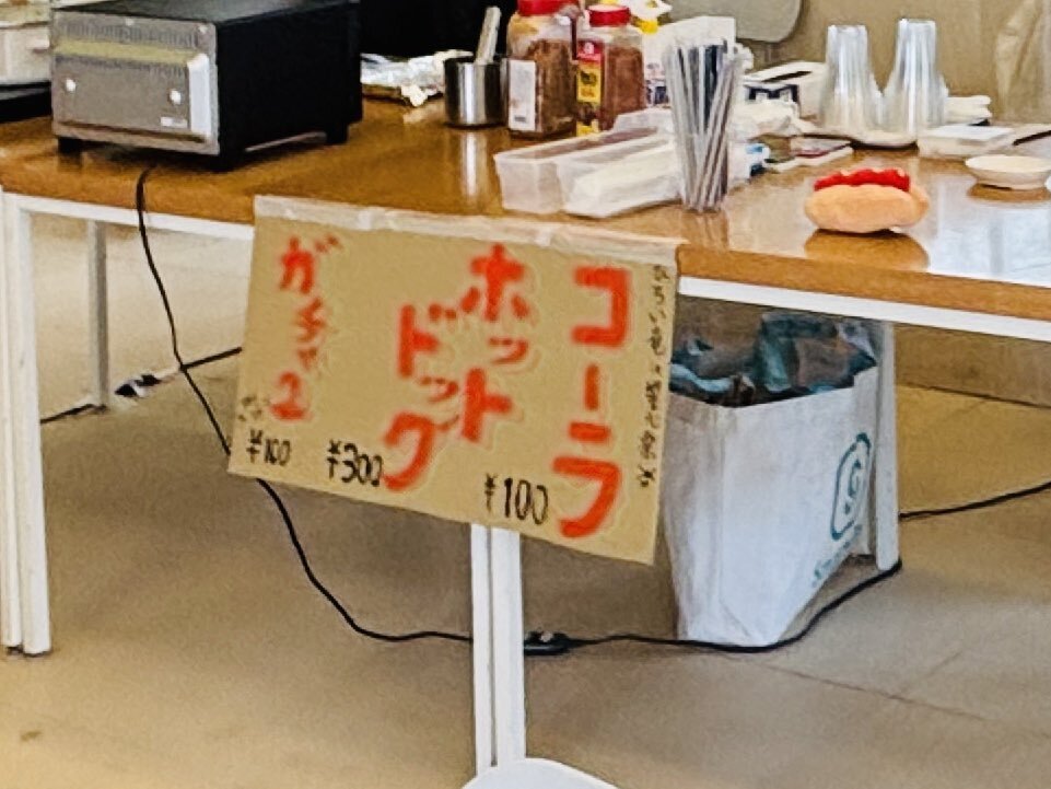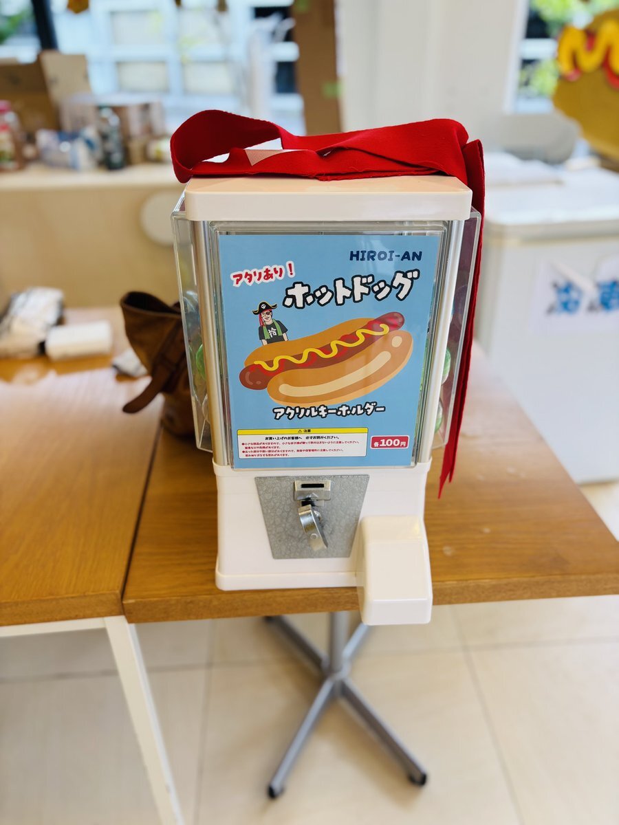 ひろい庵ではホットドッグが食べられます! オニオンフレークがカリカリで美味しい ガチャガチャと顔出しパネルがあります …職員有志で出店してるので宣伝を #成安造形大学 #響心祭