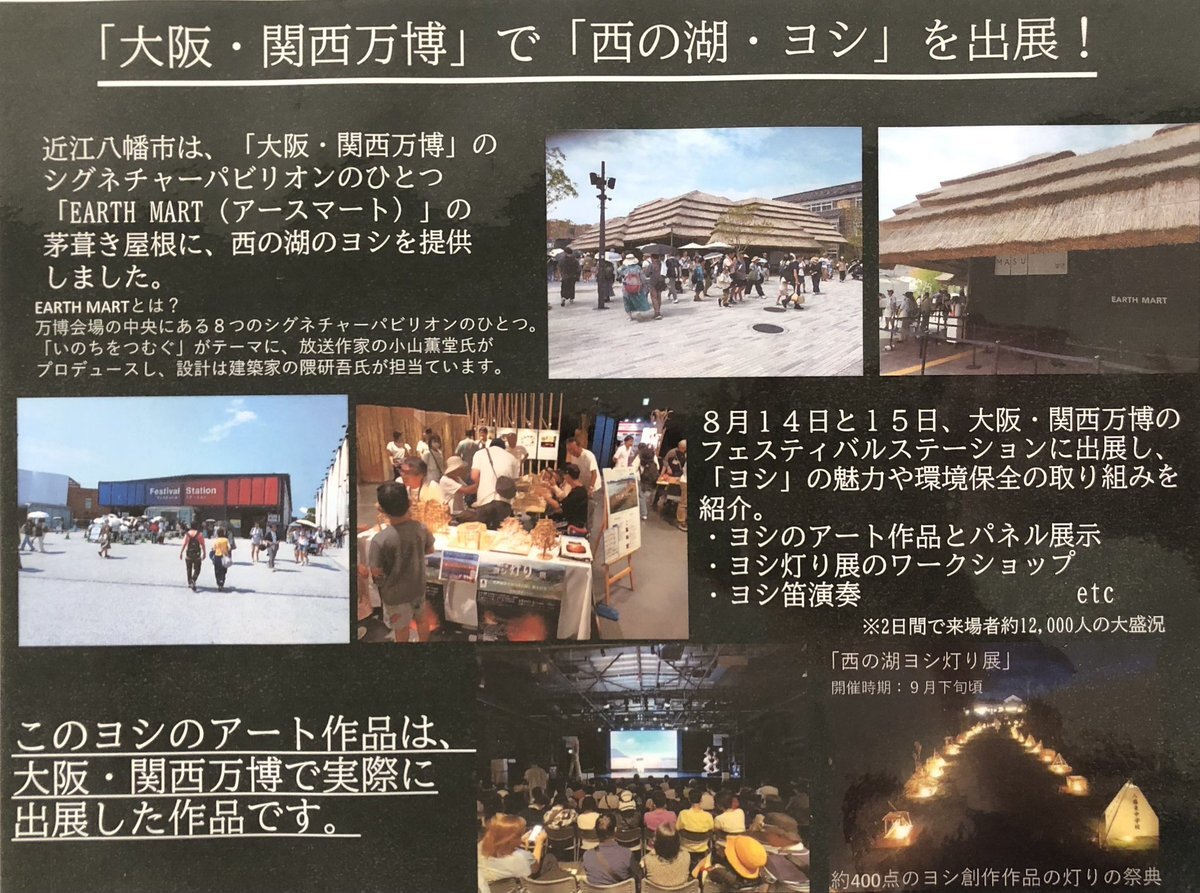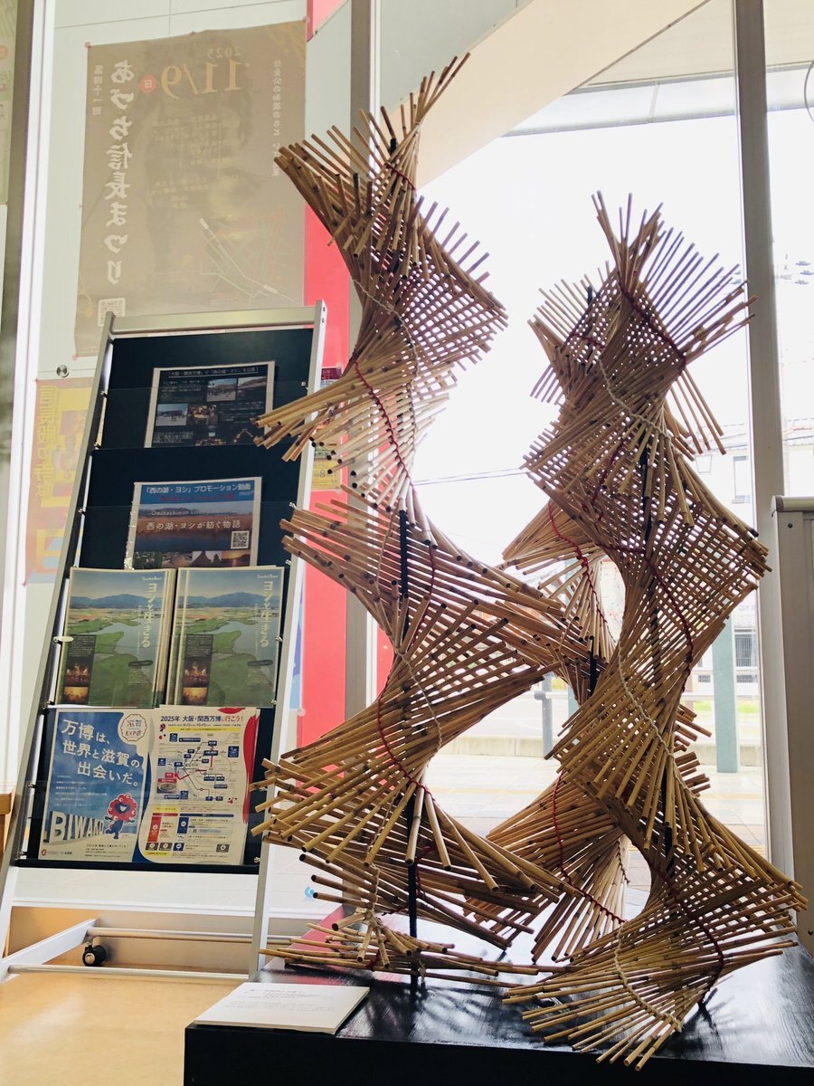8/14.15に大阪・関西万博で近江八幡市共催サステナビリティイベント『未来をつむぐ、草原・湖と人の関係性』が開催され、資源を活用したアート/パネル展示に出展された西の湖のヨシを使ったアート作品を、ただいま安土駅観光案内所内で展示中です。 ぜひご覧下さい😊 #成安造形大学 #生物多様性 #循環 pic.x.com/gSqCzq4tYz