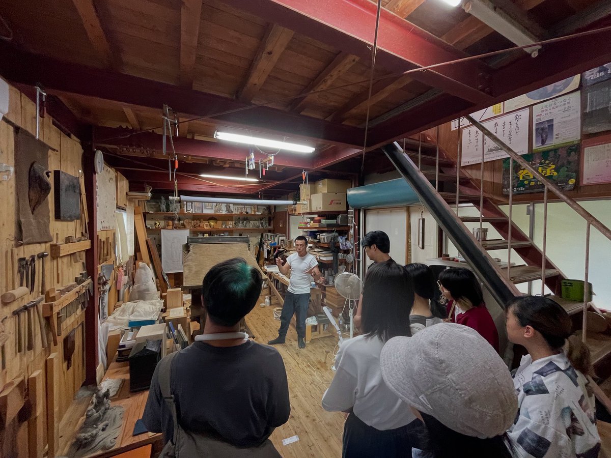 成安造形大学の授業で近隣の古い村を調査 古民家をリノベーションする課題ですが、様々な作家さんたちが集まってきていておもしろい地域です 仏師の方の説明を真剣に聞く学生たちの図 #成安造形大学 #空間デザイン領域 #住環境デザインコース seian.ac.jp pic.x.com/miIxPtmROp