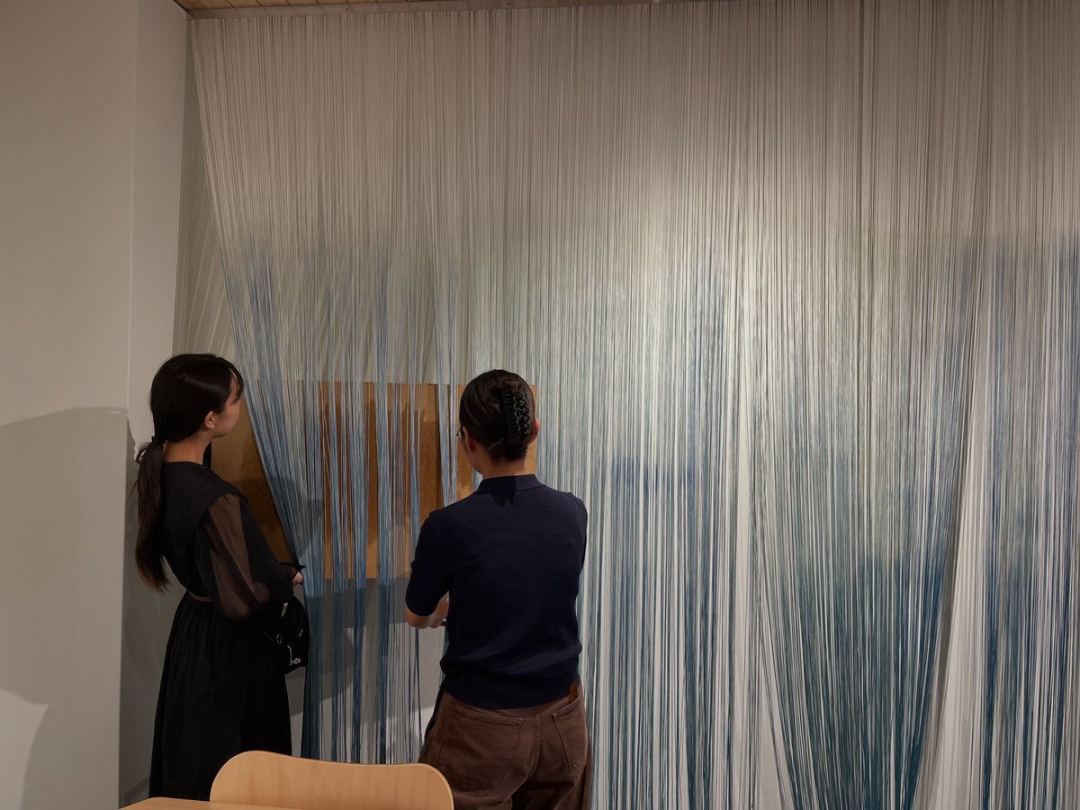 とくしまDXHUBにて成安造形大学で制作してもらった藍染のストリングカーテンの微調整 グラデーションに染めたレイヤーの重なりが美しい空間になりました! #yMdesignoffice #徳島 #建築 #デザイン ymdo.net #成安造形大学 #空間デザイン領域 #住環境 seian.ac.jp pic.x.com/f1QPJnd5MV
