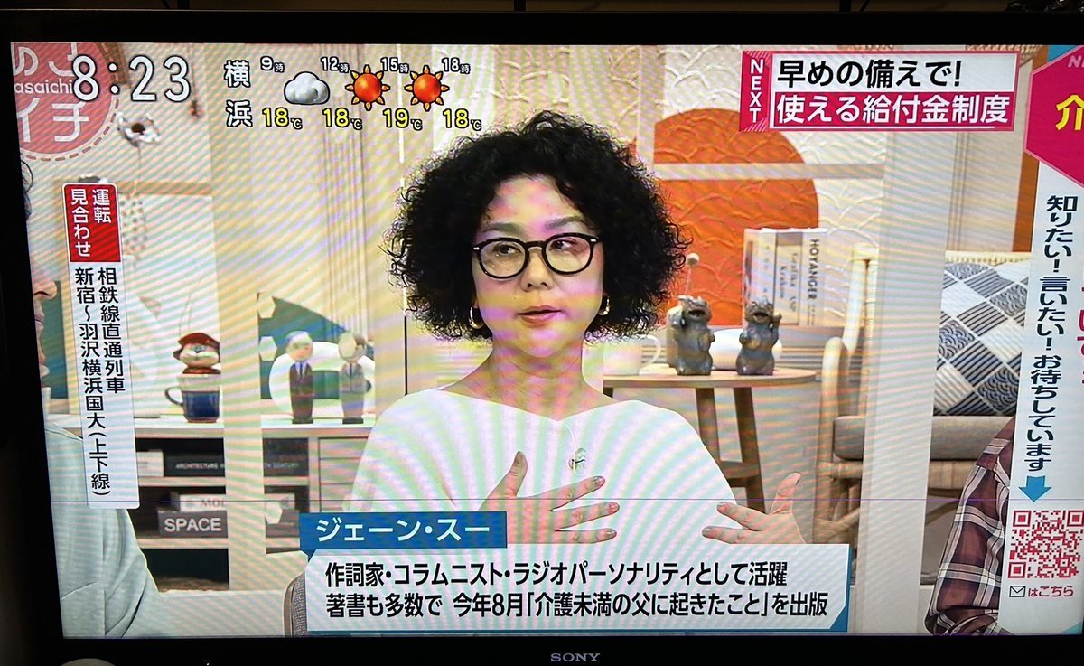 あさイチ出演。ありがとうございました!本格的な介護が控えている身として、学ぶことが多かったです。にしても介護職員の給与をあげてくれ国よ……。保育士もだよ。写真は友だちが送ってくれたテレビの私。「手振りがなんやかんやヒップホップ」とのこと。拙著「介護未満の父に起きたこと」何卒。