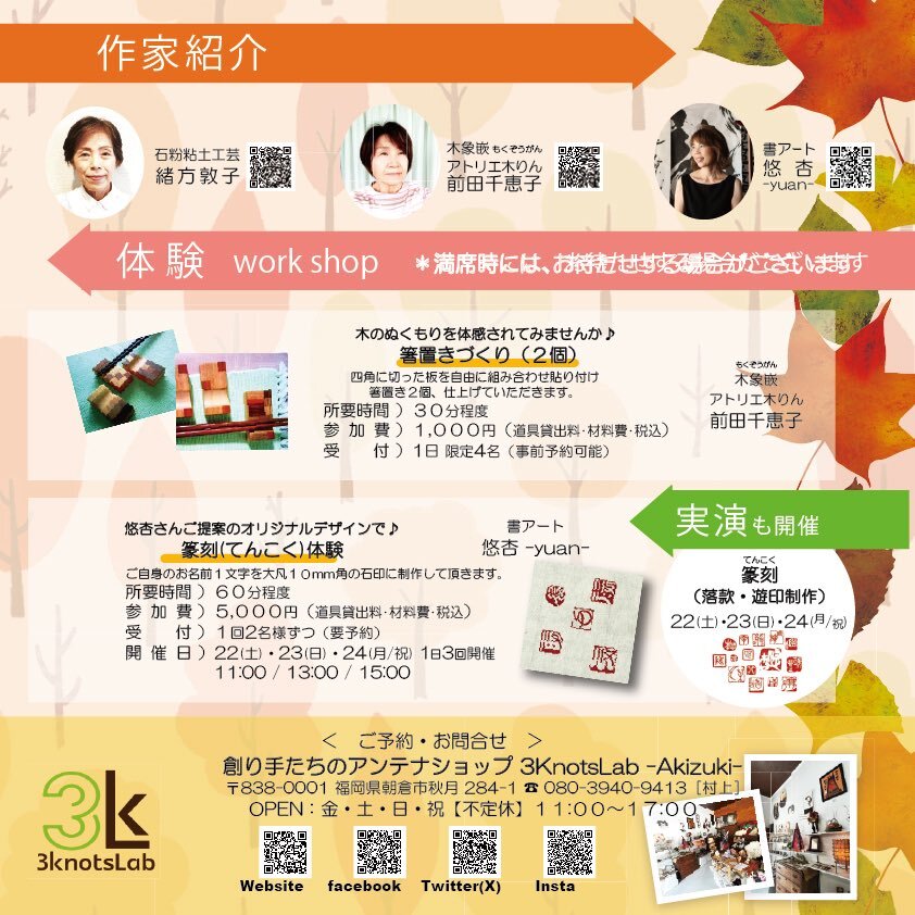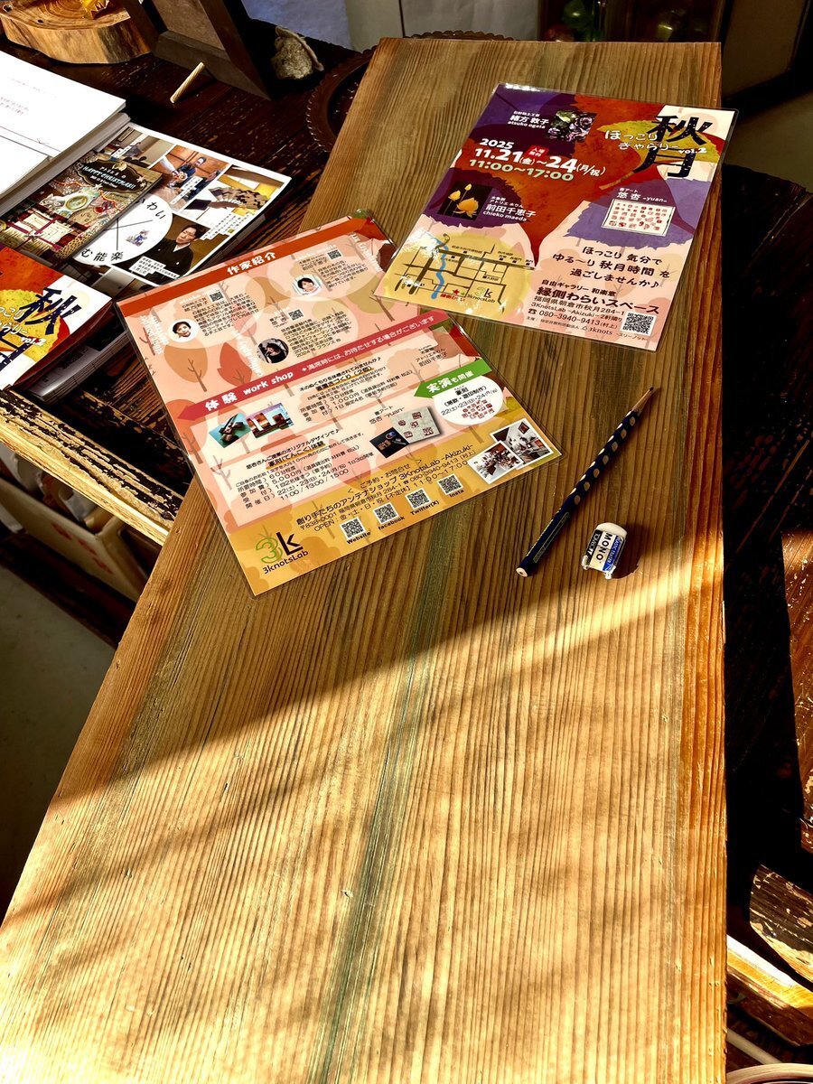 3Knots-Akizuki-の お店番をしながら〜 誘導看板制作✏️✨ *今頃(笑) 沢山のお客さまに お越し頂けると嬉しいなぁ😊 #看板制作 #楽しみ楽しみ #ワークショップ #箸置づくり #篆刻体験 #紅葉スポット #作品展示 #作品販売 #実演 #体験 #笑顔 #朝倉市 #秋月 #アート #工芸 #手仕事 #3Knots #npo pic.x.com/CRzQM5W36G