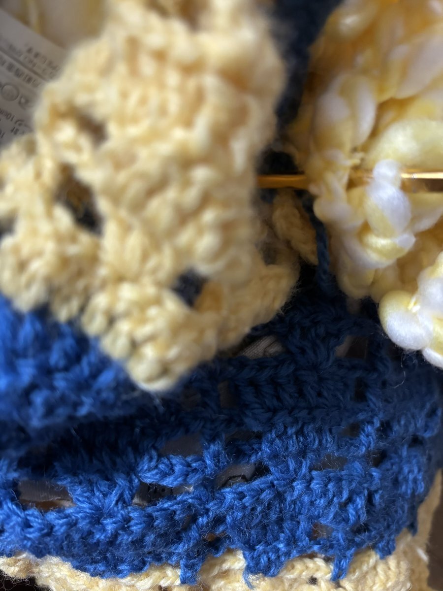 ネムネム病からの眠れない病〜否定感とイライラを抑えるため 編み物三昧ꉂ🤣𐤔夏終わるけどピスタチオグリーンの方眼ベスト💚や相方様専用手首ウォーマー😍そして、💙💛の謎のツリー模様🤔💭の何かと慌てるように制作 #手仕事 瞑想?迷走